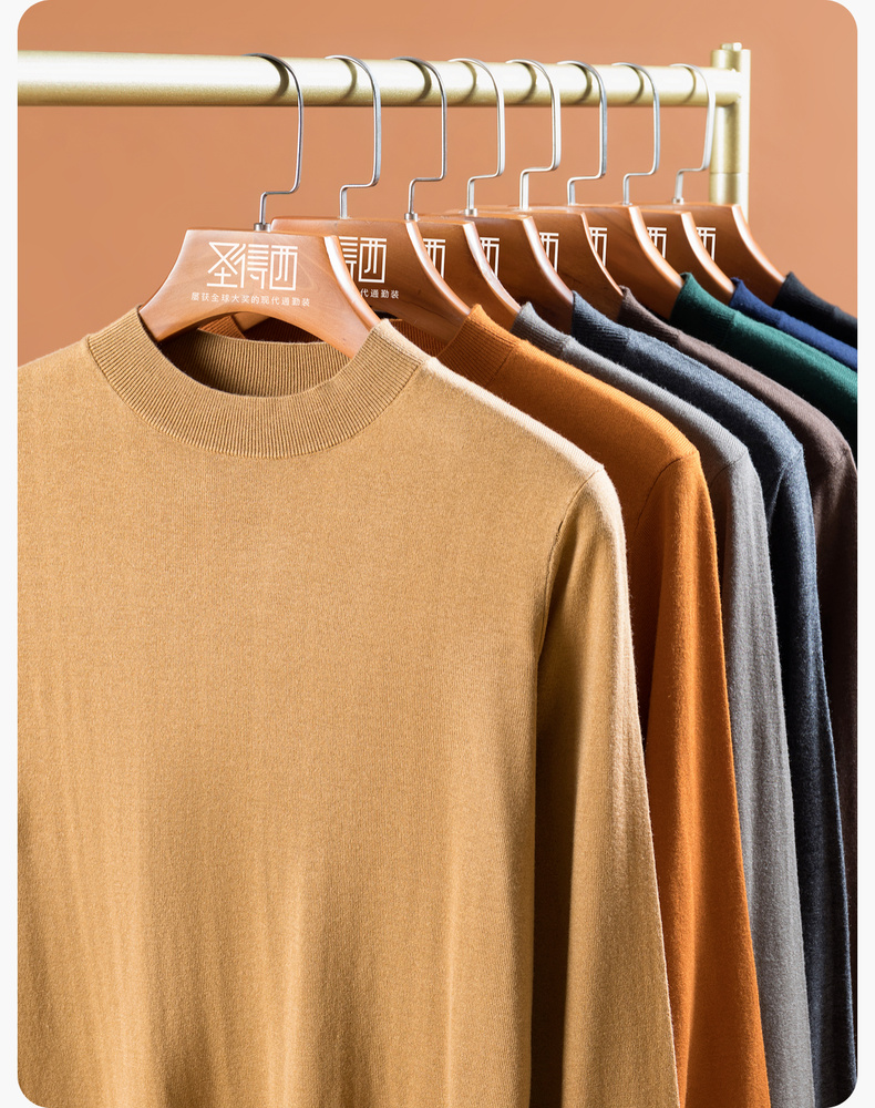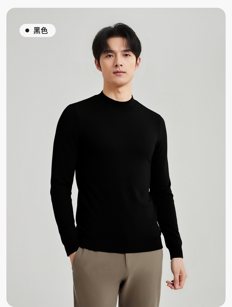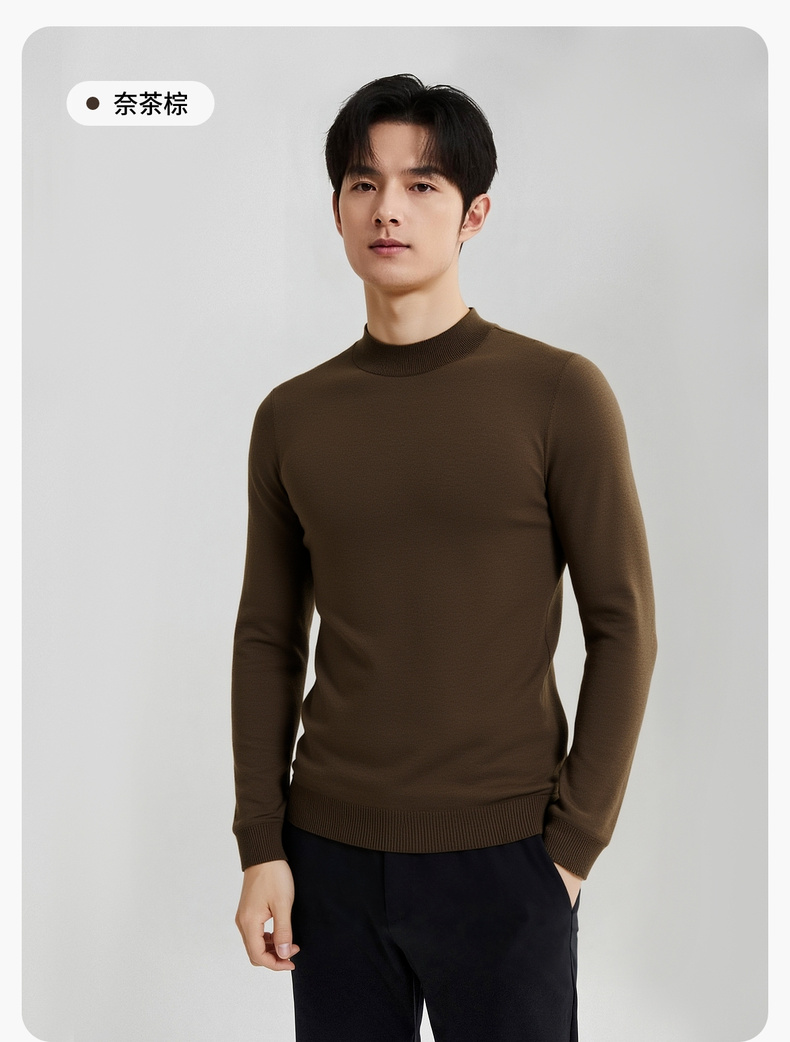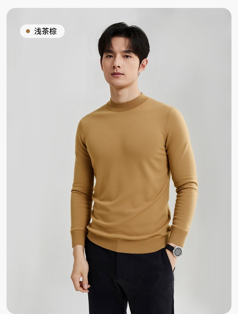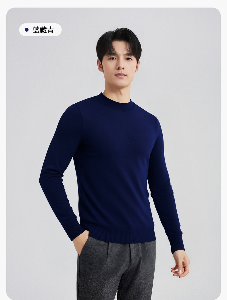 圣得西男装秋季新款百搭半高领套头纯色毛衣2362950928