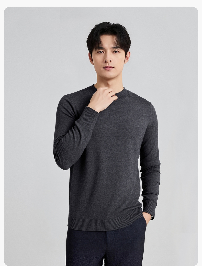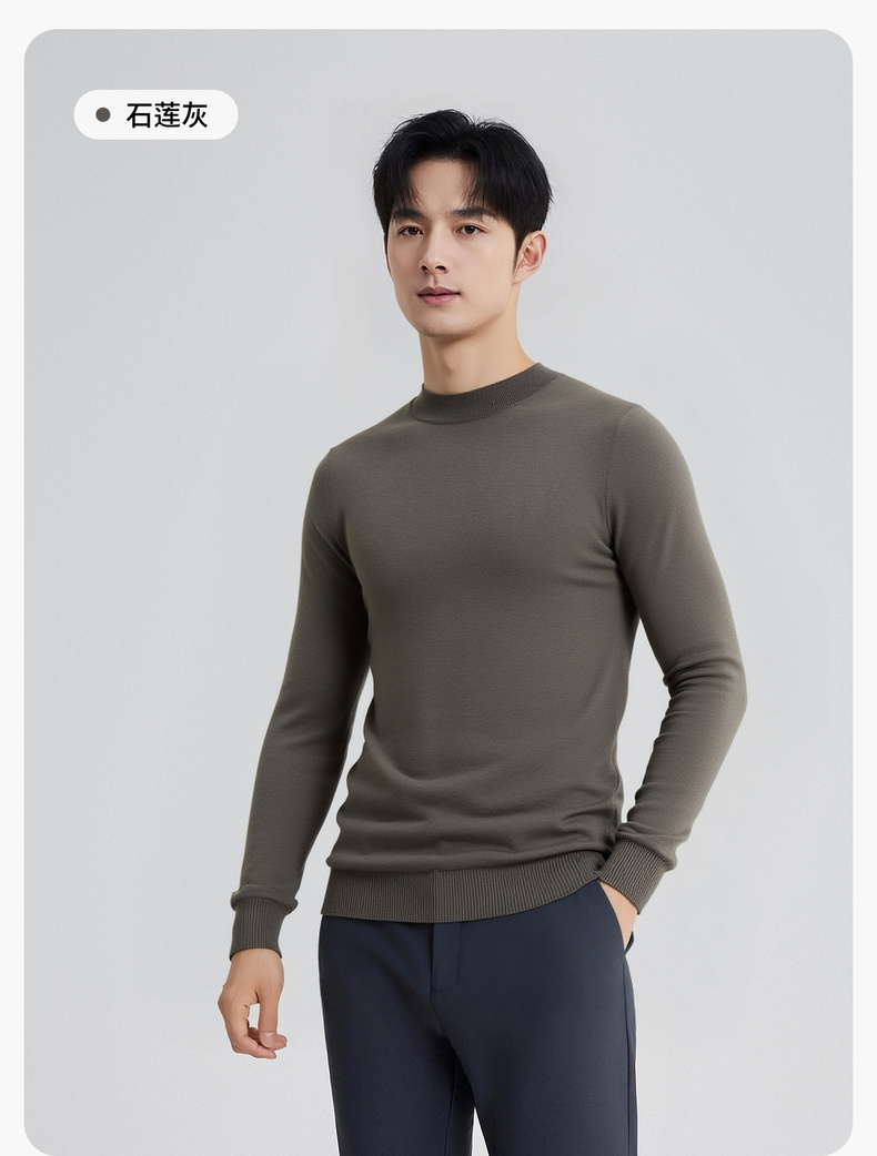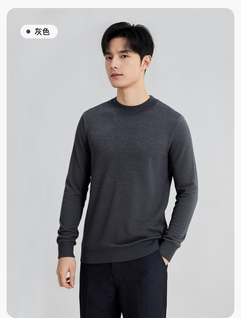 【含绵羊毛】圣得西羊毛混纺针织衫2025秋新款素雅百搭耐穿毛衣男