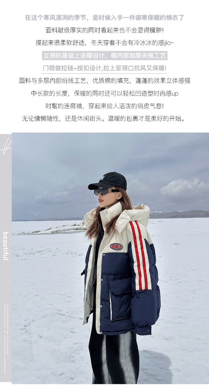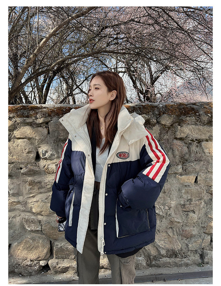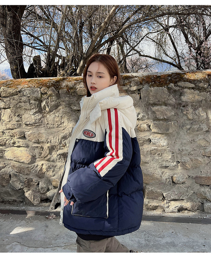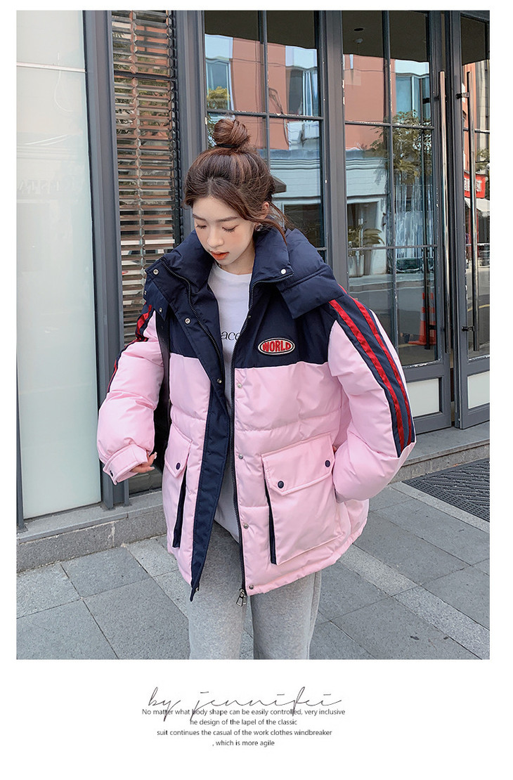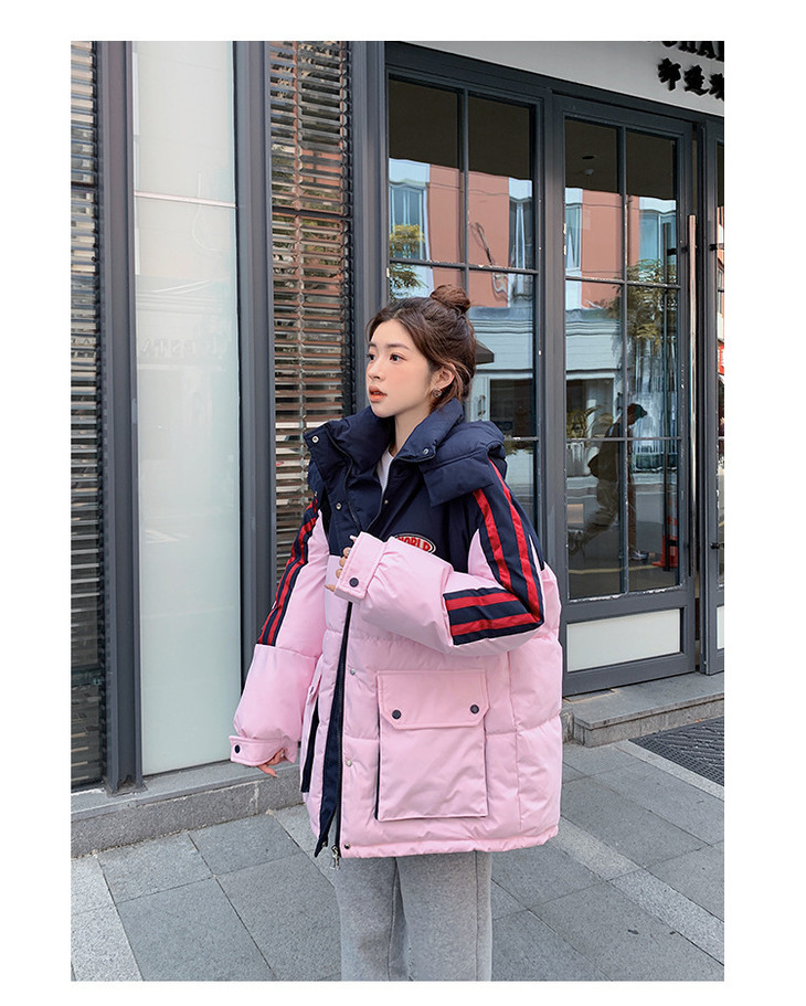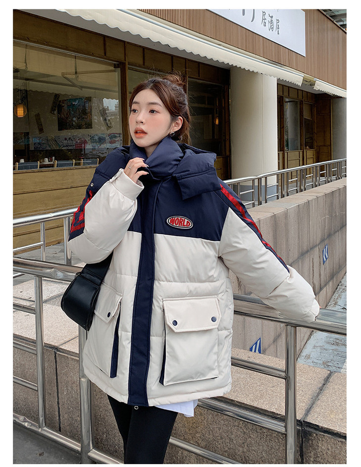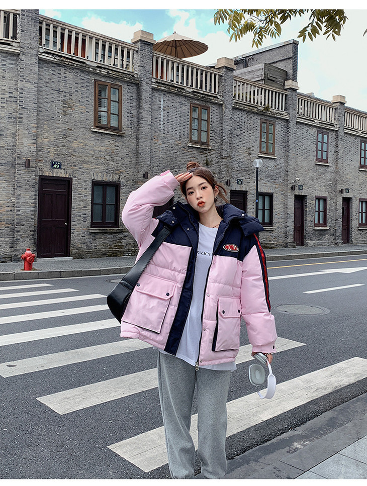 冬季新款棉服女大码撞色情侣面包服厚棉衣宽松保暖棉袄外套潮