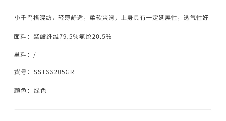 callisto绿色小千鸟格混纺衬衫 SSTSS205T
