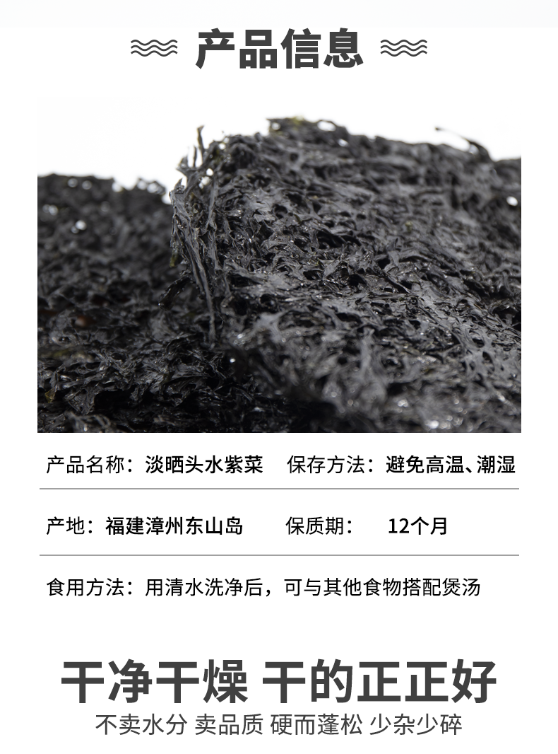 港岛姑娘 精选特级头水紫菜无沙免洗人工!采割自然晒干,营养美味 250g/包