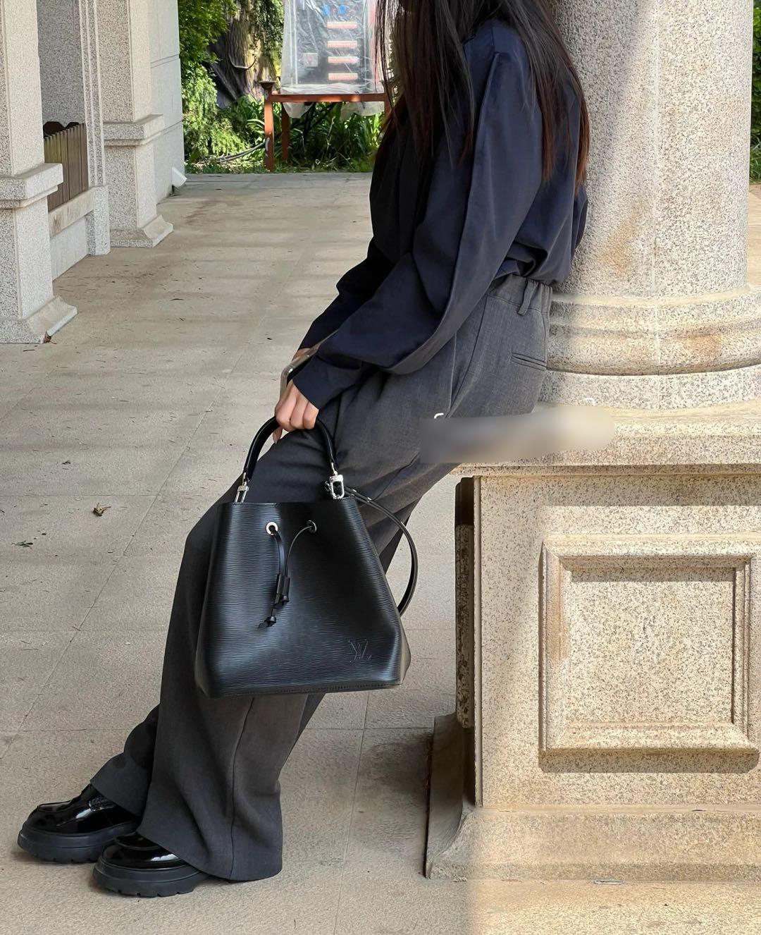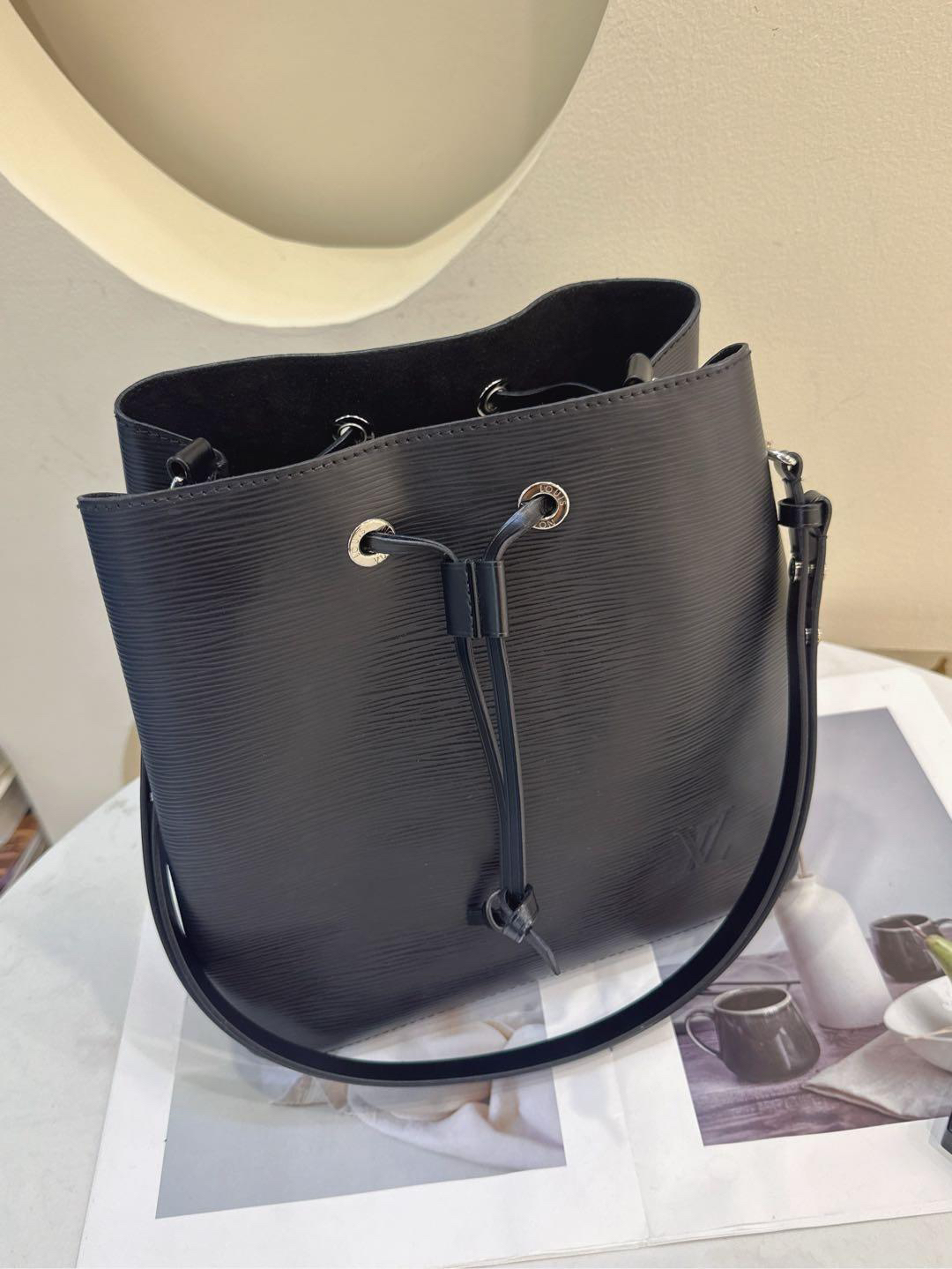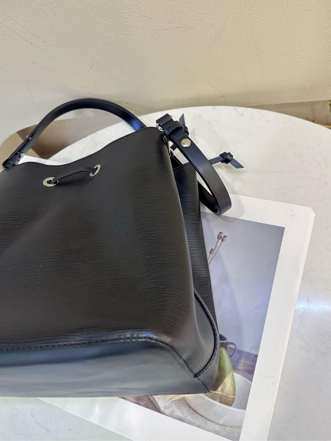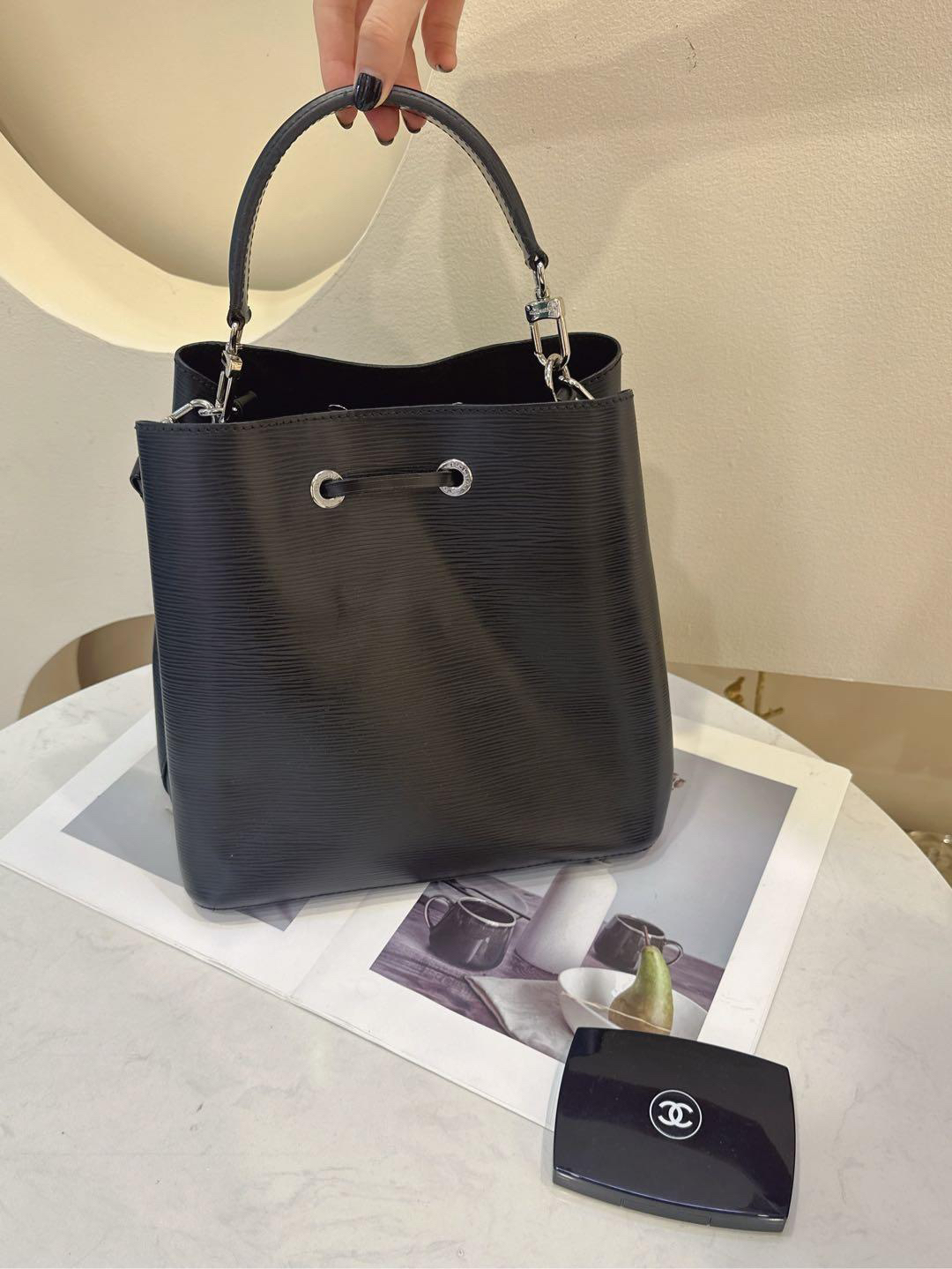 【商品詳情】正品二手 LV 水波纹 黑水桶 手提 单肩包💕95新 25*27 配件:肩带 手提 防尘袋。包身和包口油边正常使用感。低调百搭容量大😼