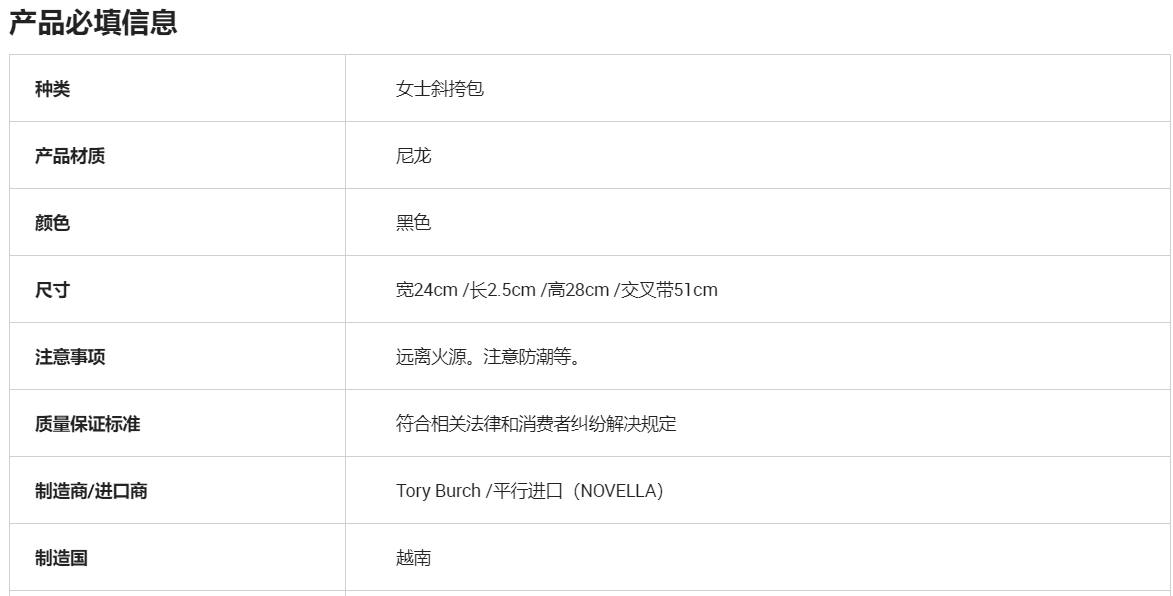 奥莱 [Tori Birch] 20FW女士佩里尼龙斜挎包(74465_001_20F)JPY带授权招加盟代理