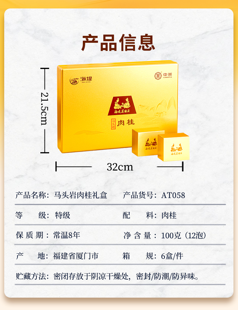 中茶海堤AT058马头岩肉桂礼盒100g/盒(12泡)