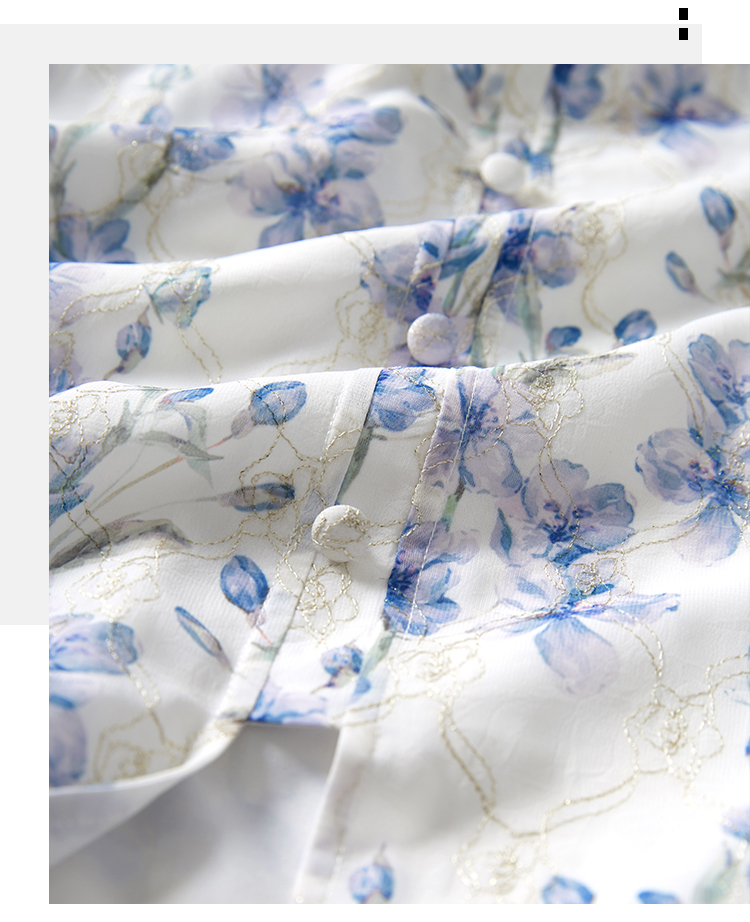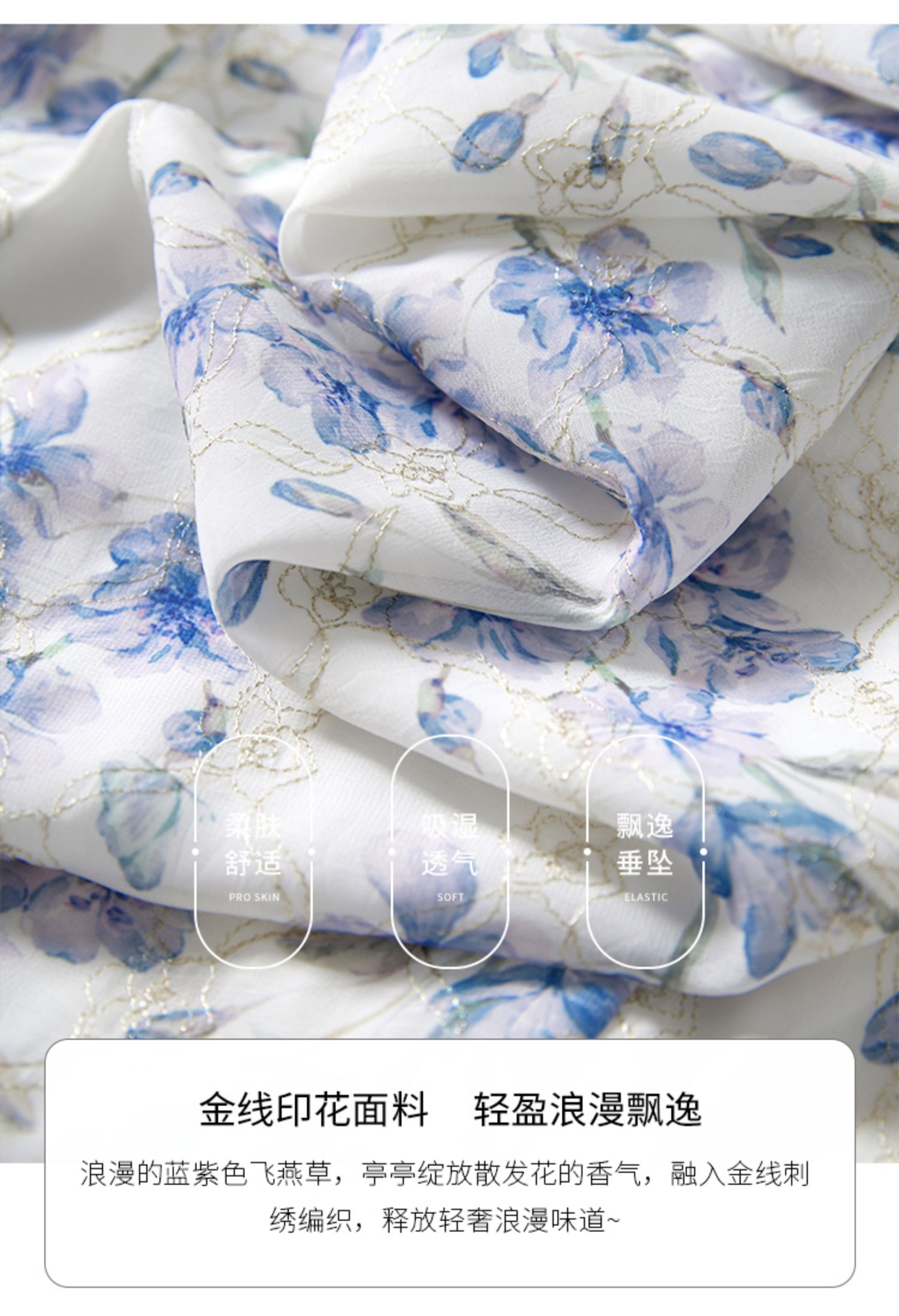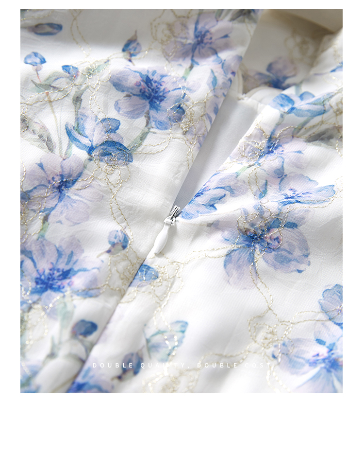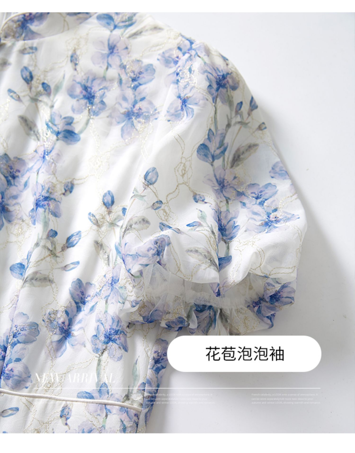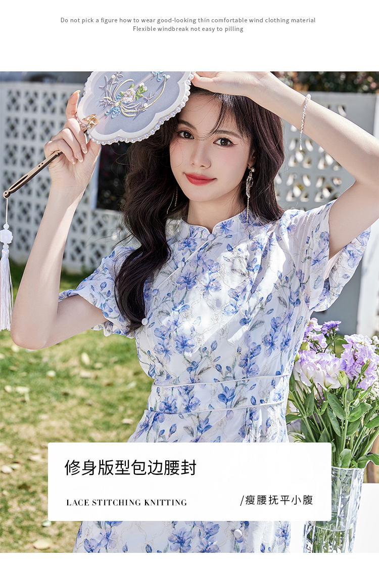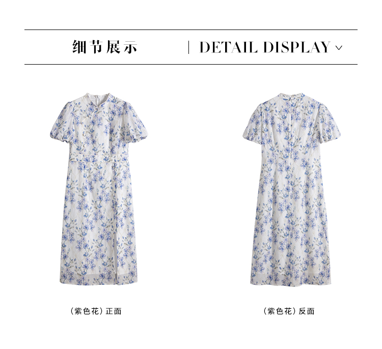 【专属特价】熙世界青花瓷印花国风立领改良版新中式泡泡袖开叉旗袍连衣裙女夏