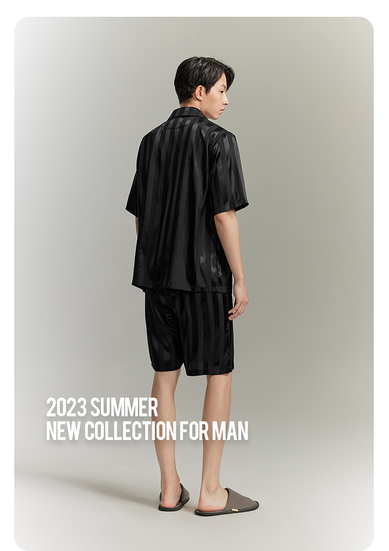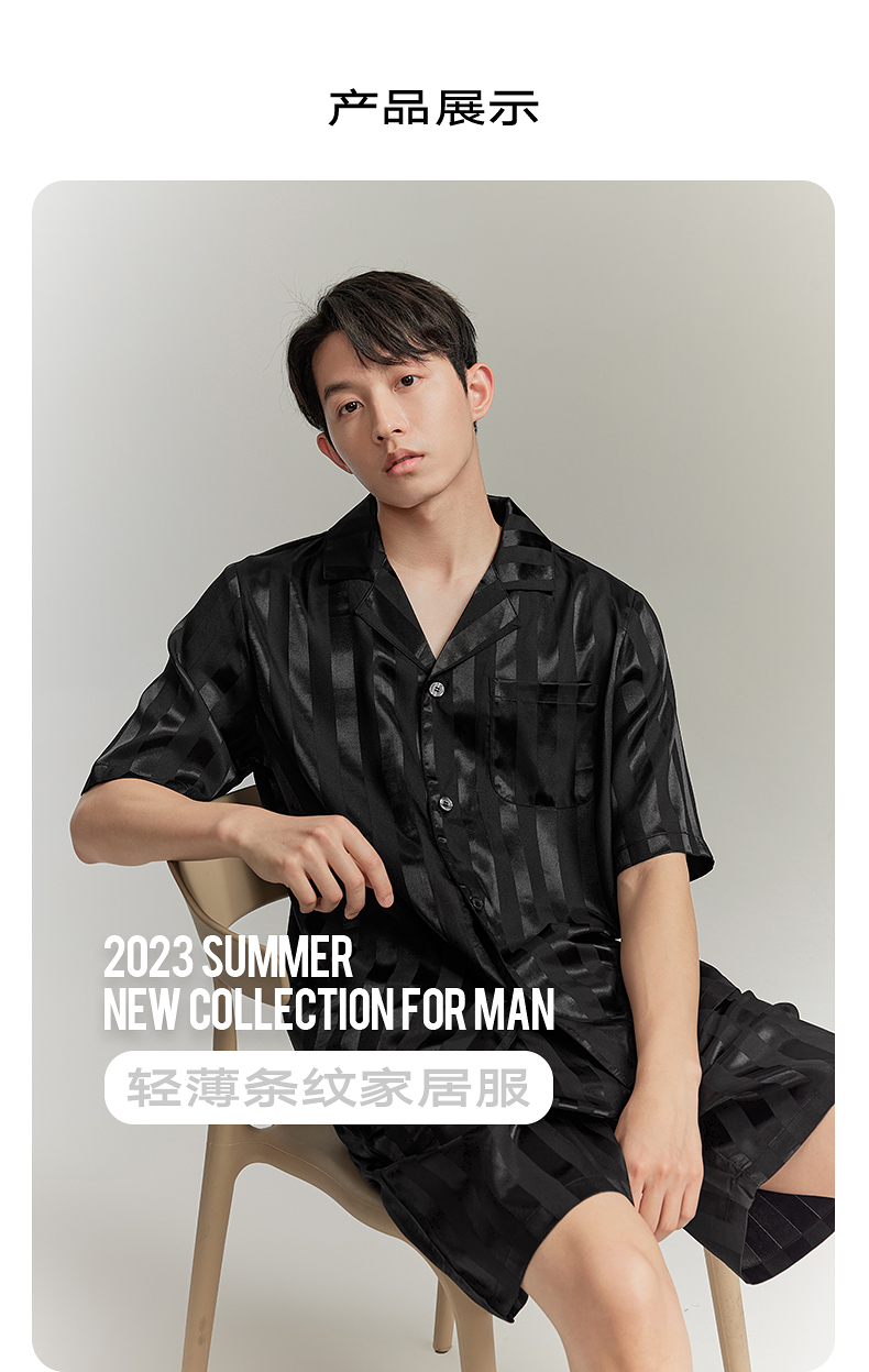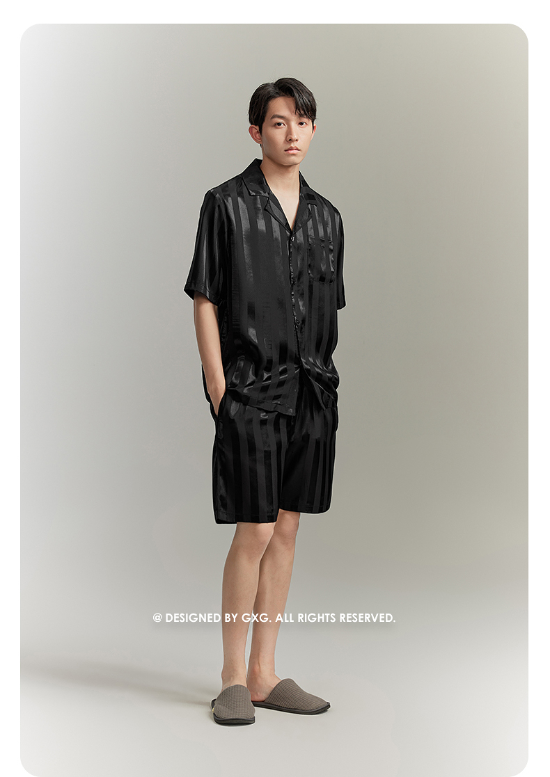 GXG男士家居服缎面冰丝顺滑睡衣男款短袖短裤套装 夏季热卖