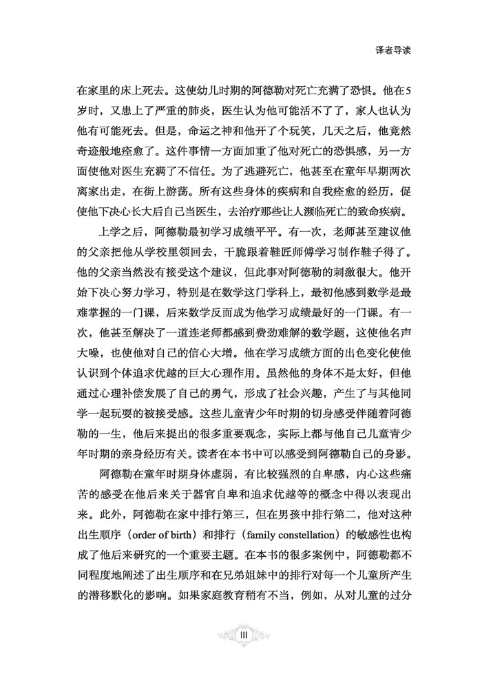本书是奥地利心理学家、教育家、精神病学家阿尔弗雷德·阿德勒(Alfred Adler)的代表作,以50种语言在全球发行,并畅销70多年。阿德勒是与弗洛伊德和荣格齐名的心理学大师,是个体心理学的创始人、人本主义心理学的先驱、现代自我心理学之父。