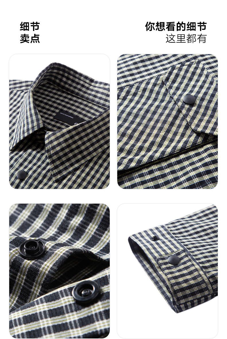 GXG男装 黑白格口袋设计休闲长袖衬衫男 24年秋季热卖G24X033018