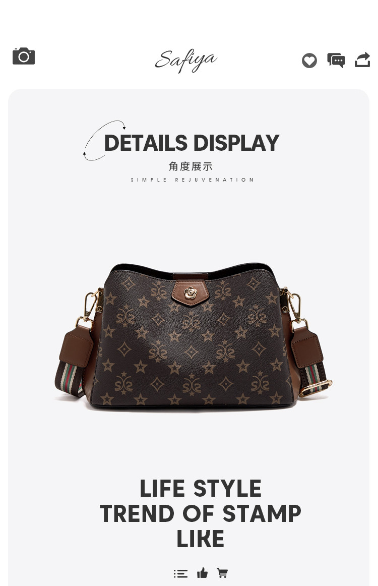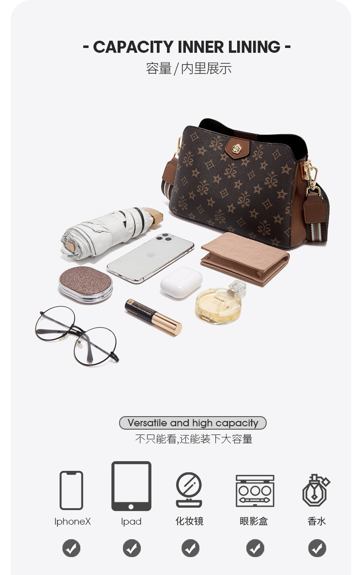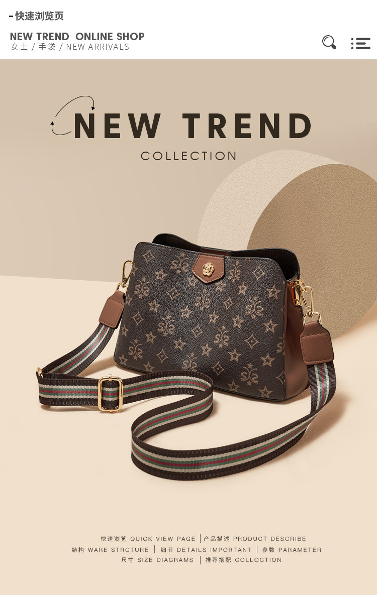 Safiya/索菲娅2023新款印花水桶包大容量单肩包包女式斜挎包女包SF9140052Y
