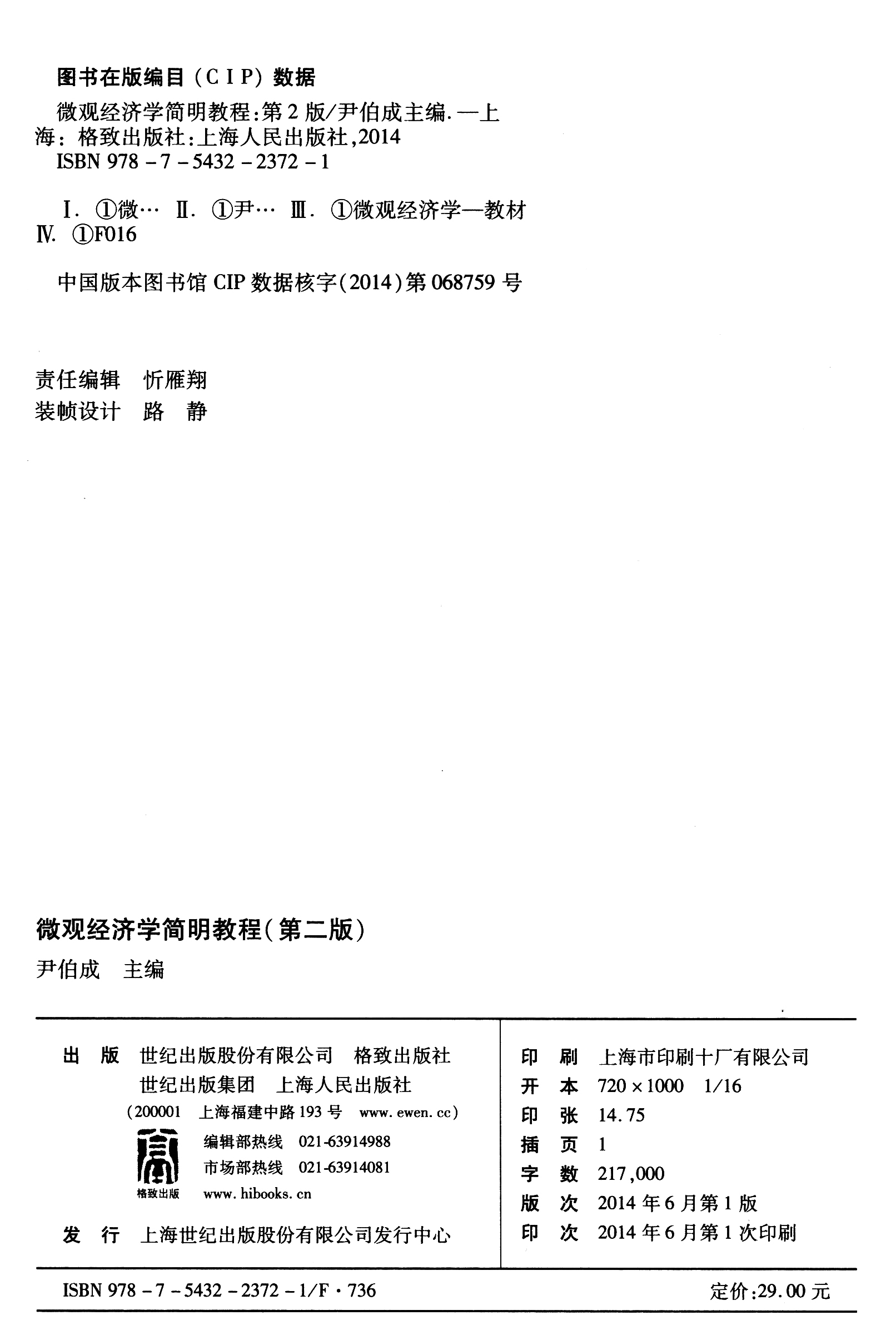 (仓发) 微观经济学简明教程(第二版)/格致出版社,上海人民出版社/9787543223721