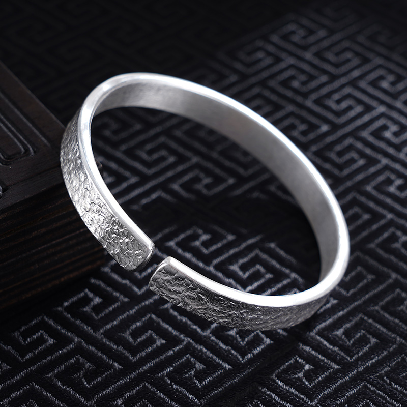 【寓意】:纯银开口手镯,通过锤纹工艺,镯面呈现自然肌理,宛若历经时光摩挲,质朴本真,经久耐看。