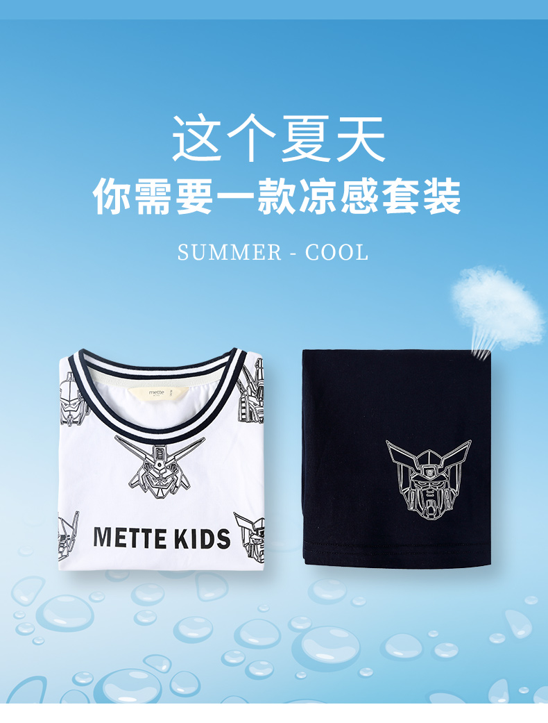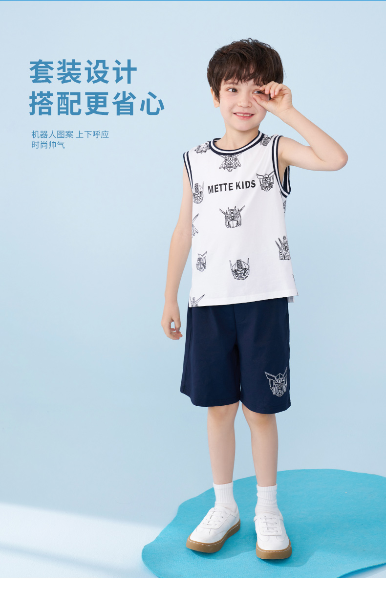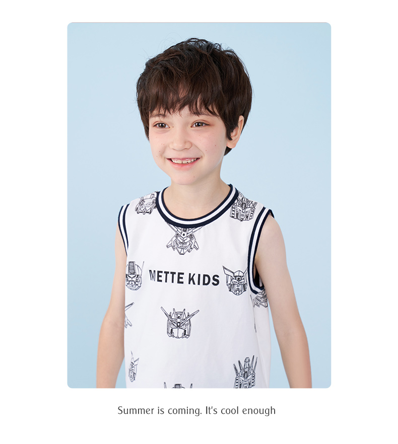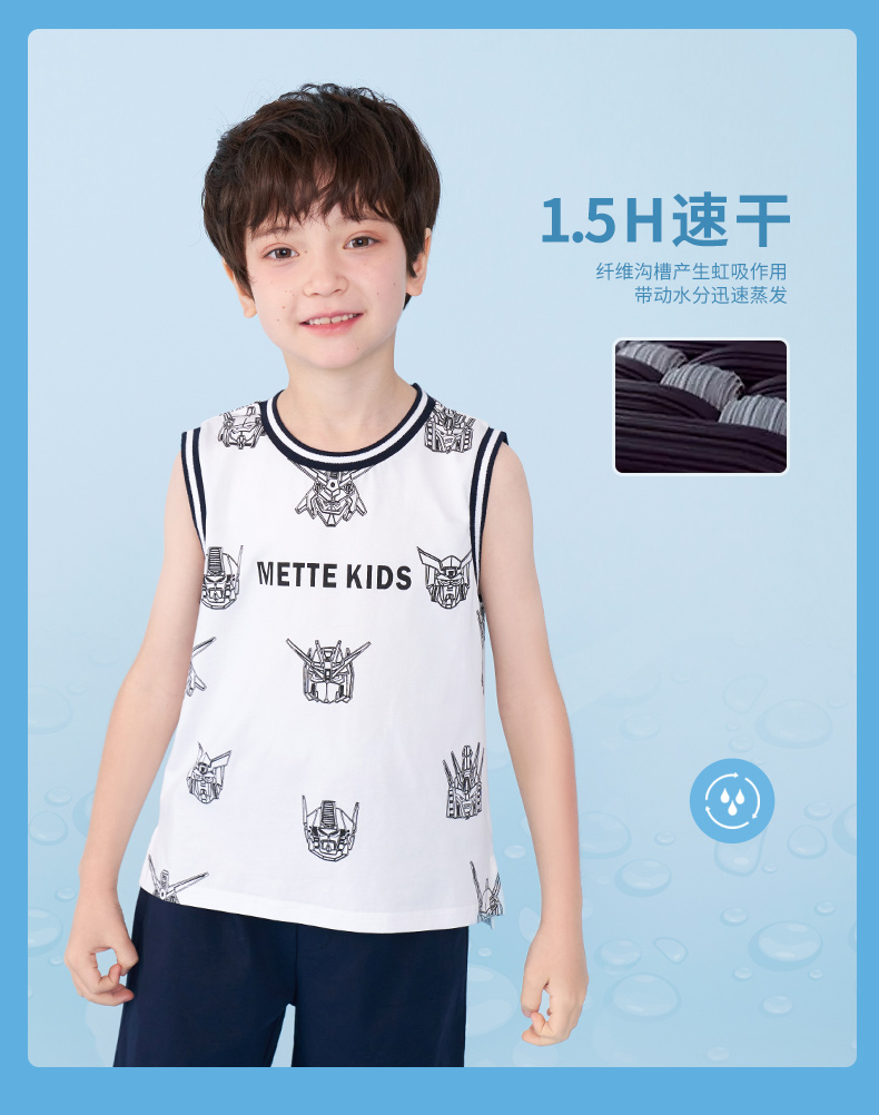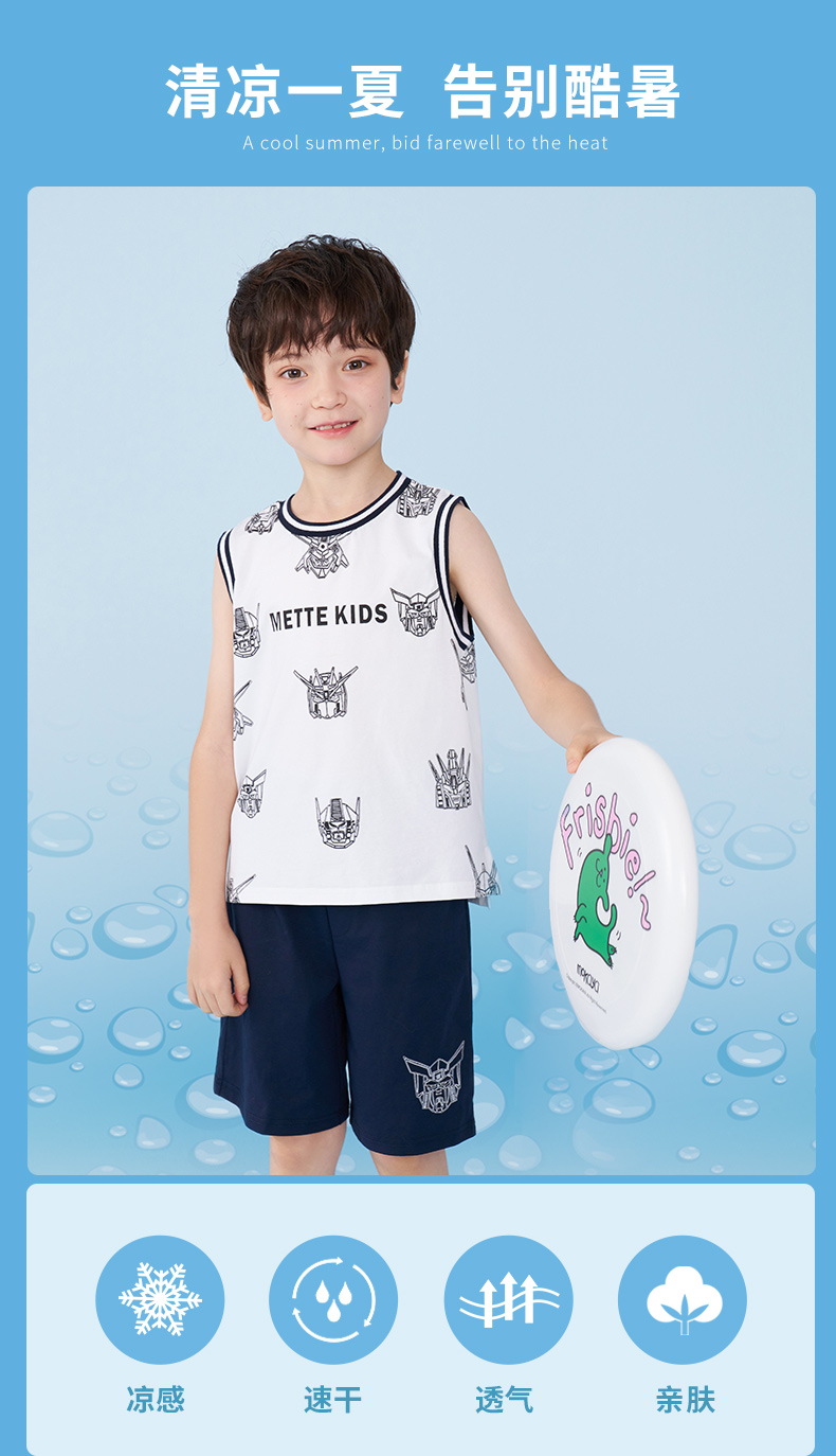 mettekids男童运动套装夏季儿童冰感背心t恤中大童休闲卡通短裤