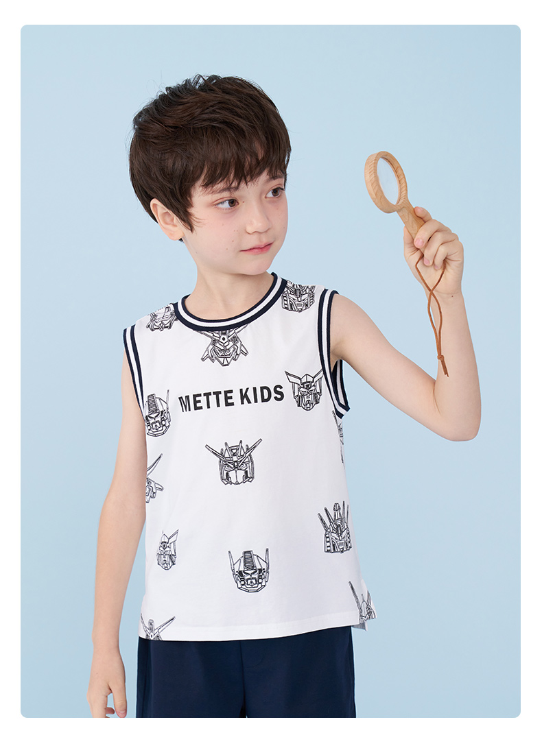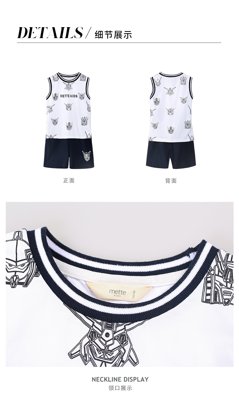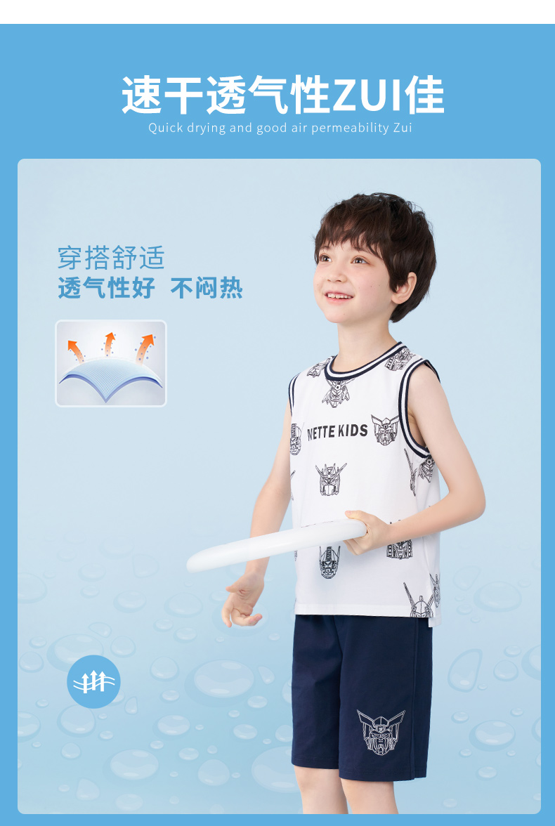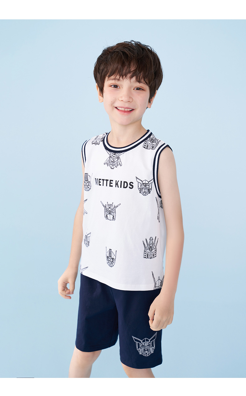 mettekids男童运动套装夏季儿童冰感背心t恤中大童休闲卡通短裤