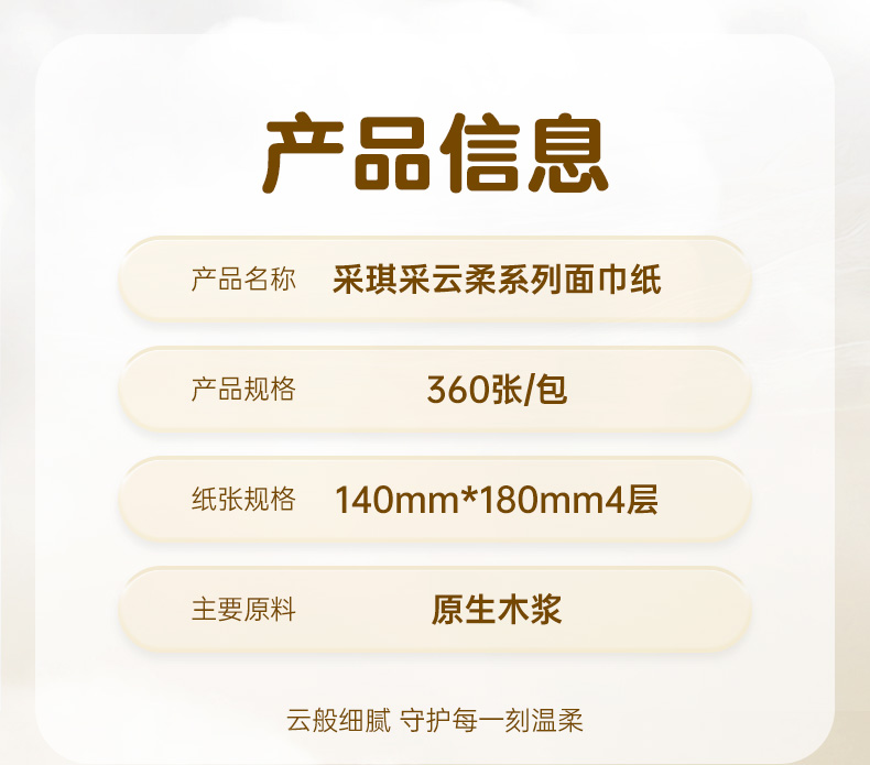 若禺采琪采系列软抽纸4层加厚360张/包原生木浆柔软舒适6包/提到手18提RR1301