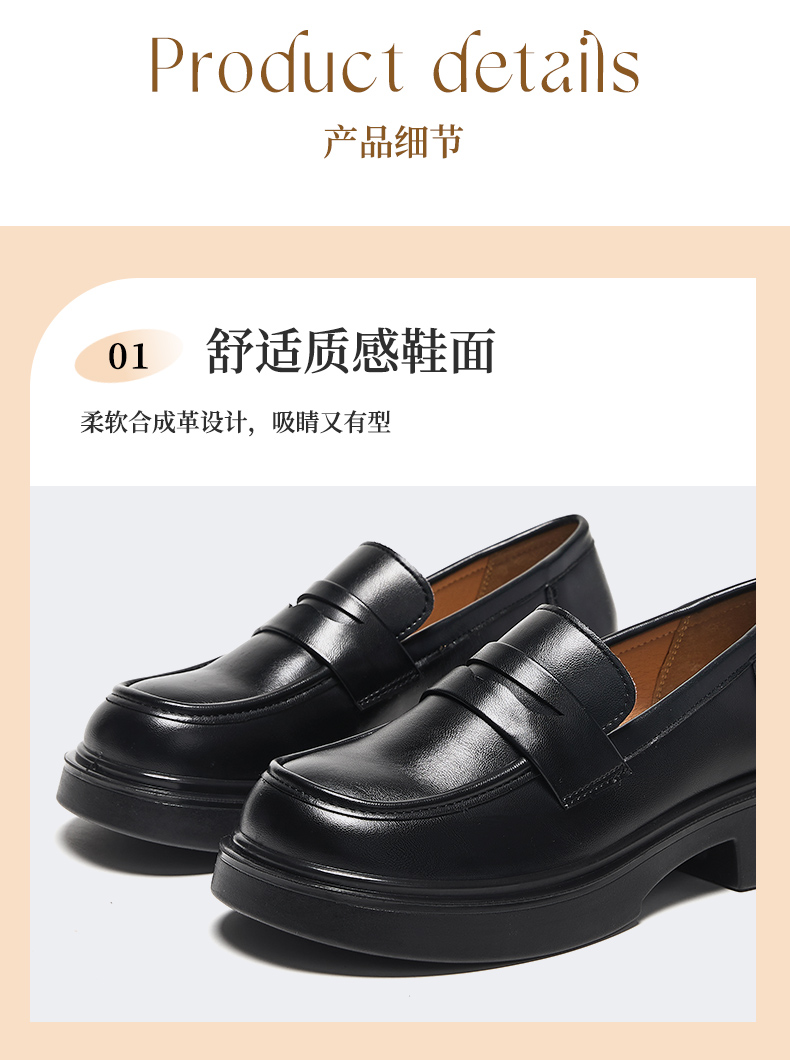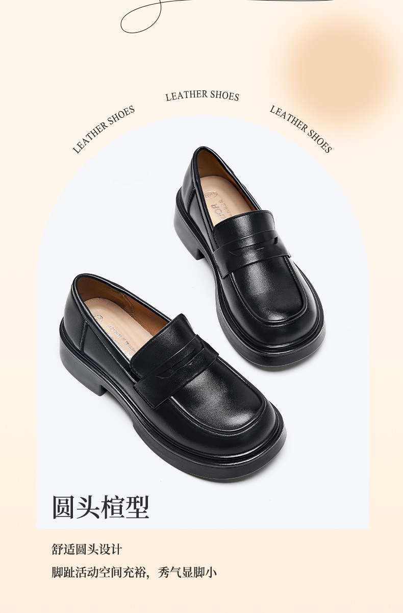 回力乐福鞋女2026春季新款厚底英伦单鞋软底鞋子黑色粗跟jk小皮鞋 WXP(WZ)-2193