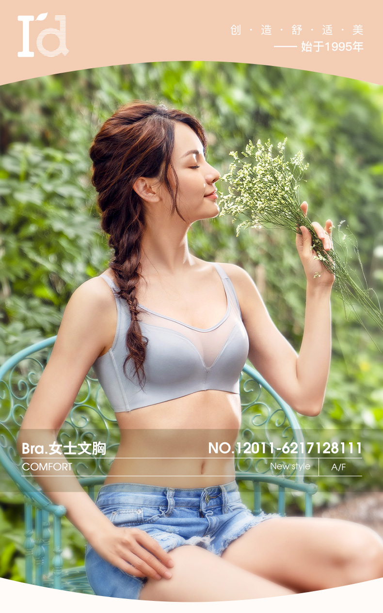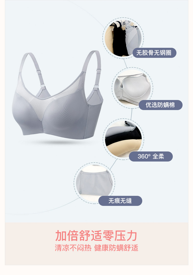 爱帝女士文胸软心杯网纱无痕无钢圈内衣