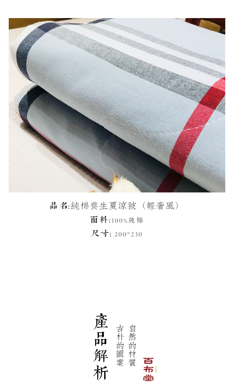 (乡村振兴商品)百布堂纯棉养生夏凉被 轻奢风(巴布瑞灰色) 商品图0