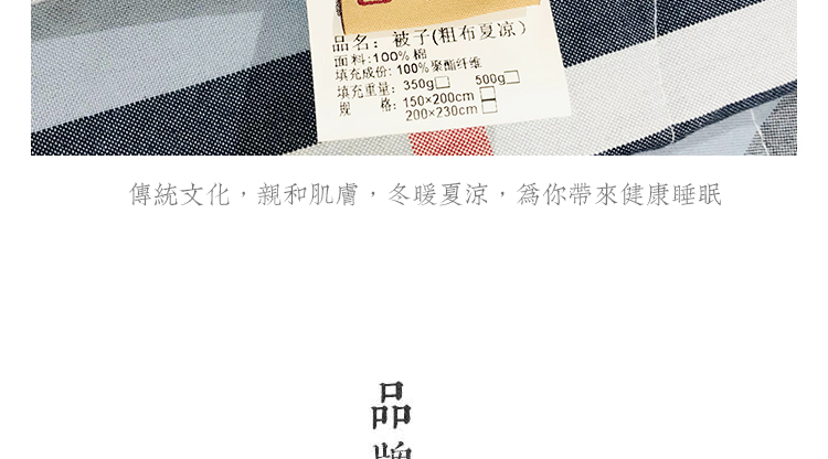 (乡村振兴商品)百布堂纯棉养生夏凉被 轻奢风(巴布瑞灰色) 商品图4