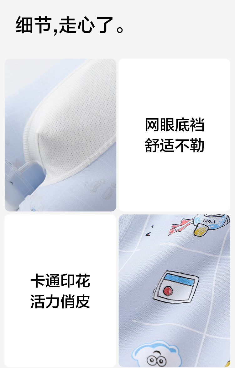 【4条装】【有棵树】【120-170】男童内裤透气儿童平角裤