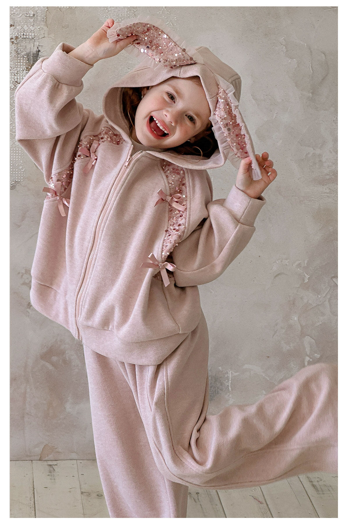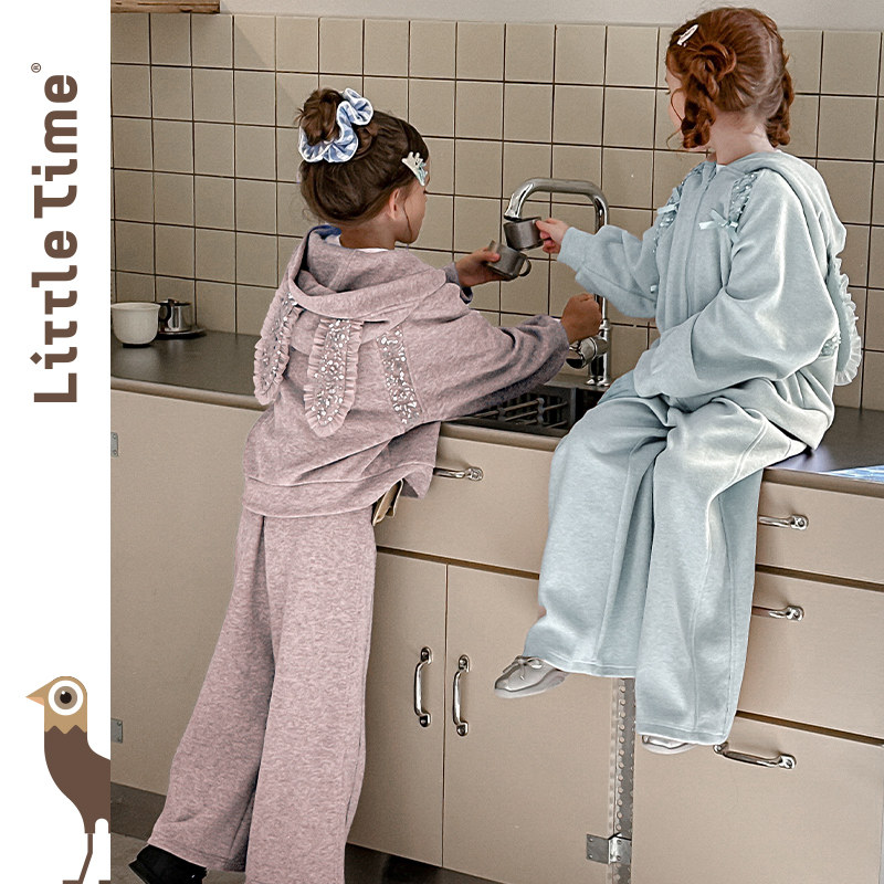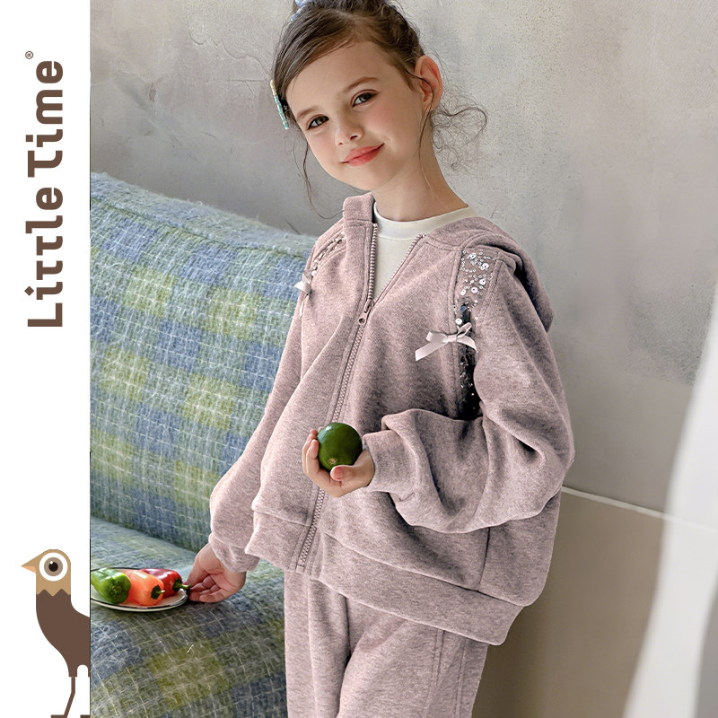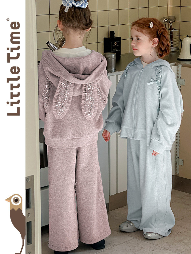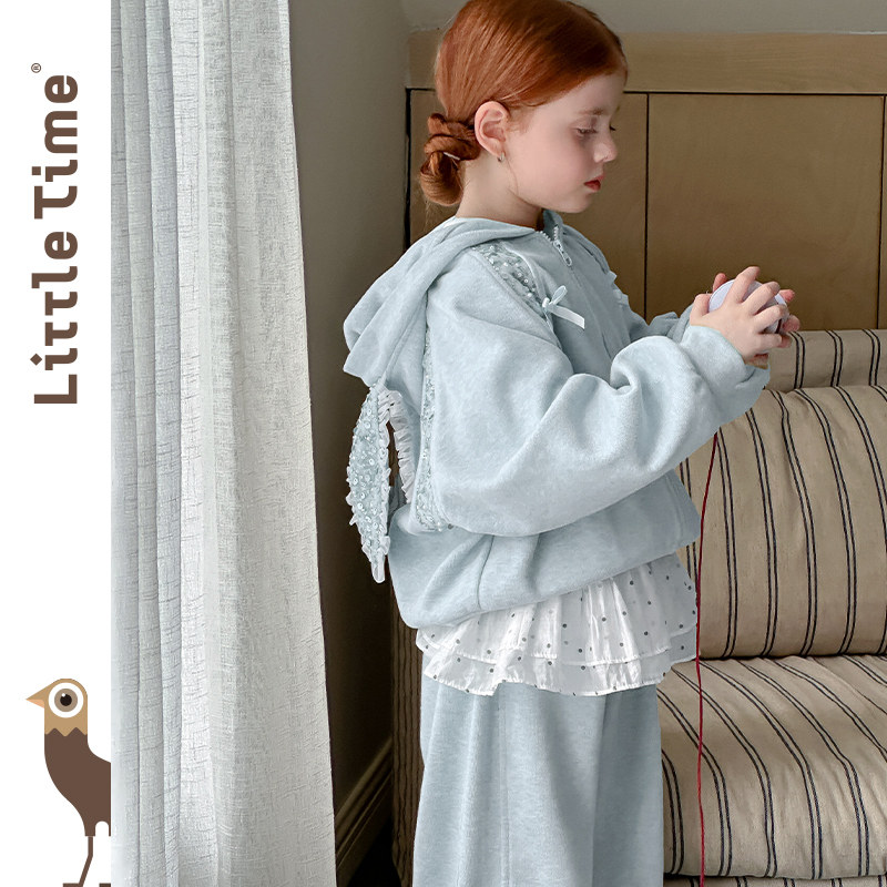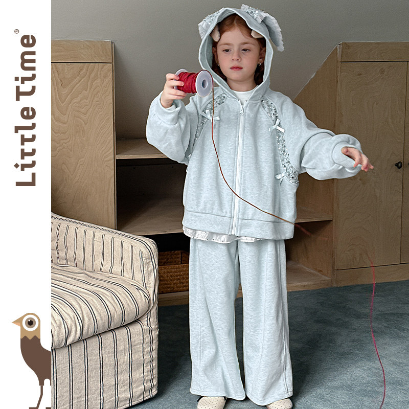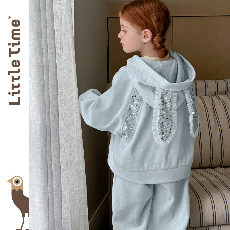 littletime女童套装2026秋冬新款儿童可爱兔子连帽卫衣卫裤两件套