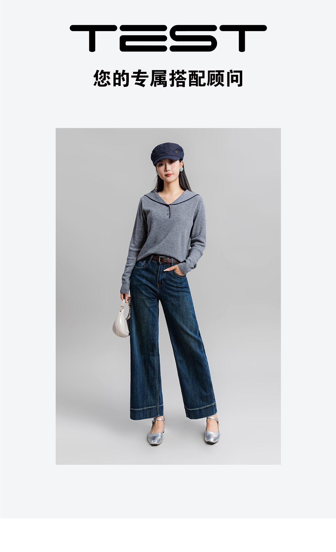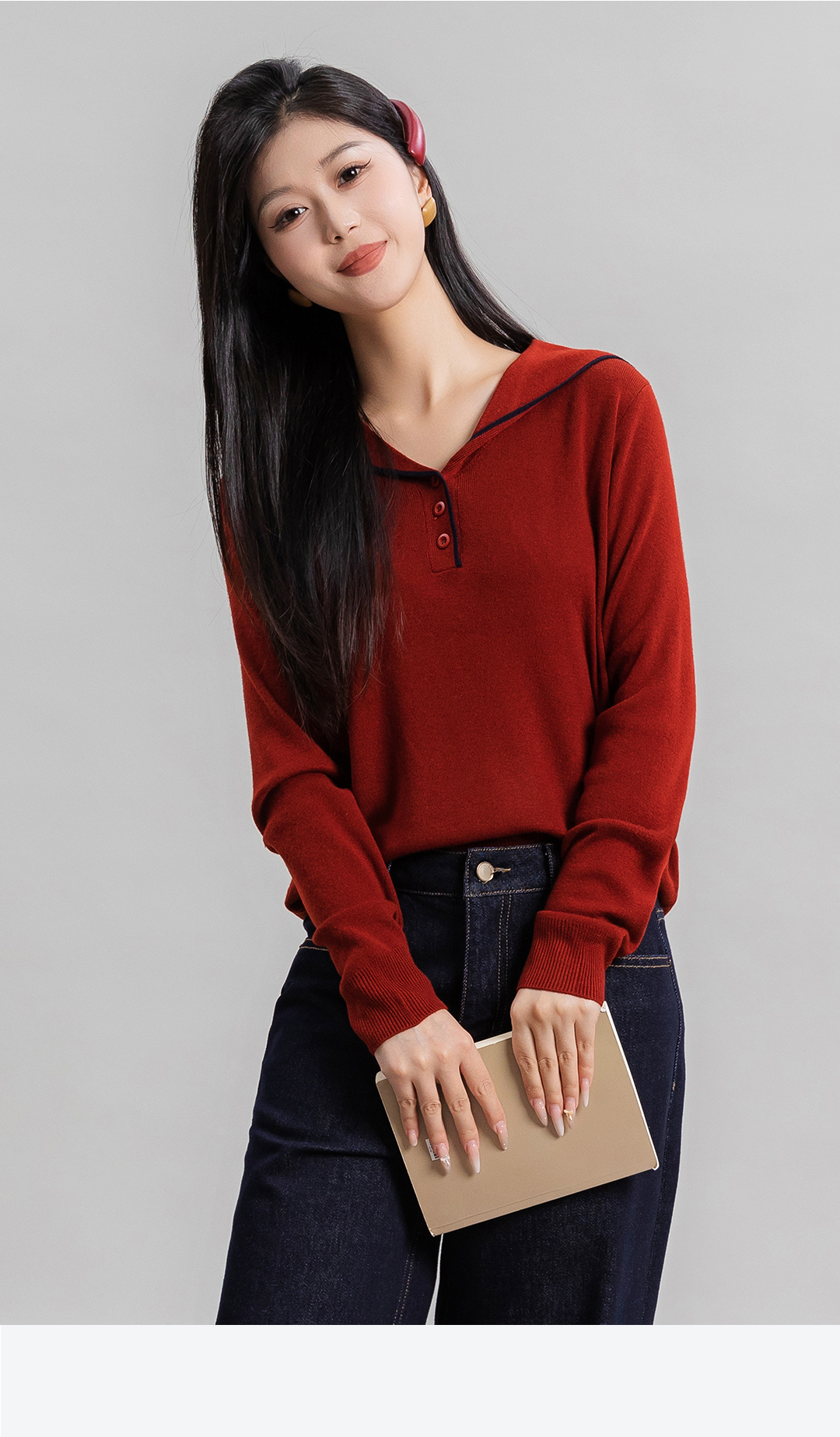 冬上新百搭显瘦长袖海军领纽扣针织毛衣1254027 商品图8