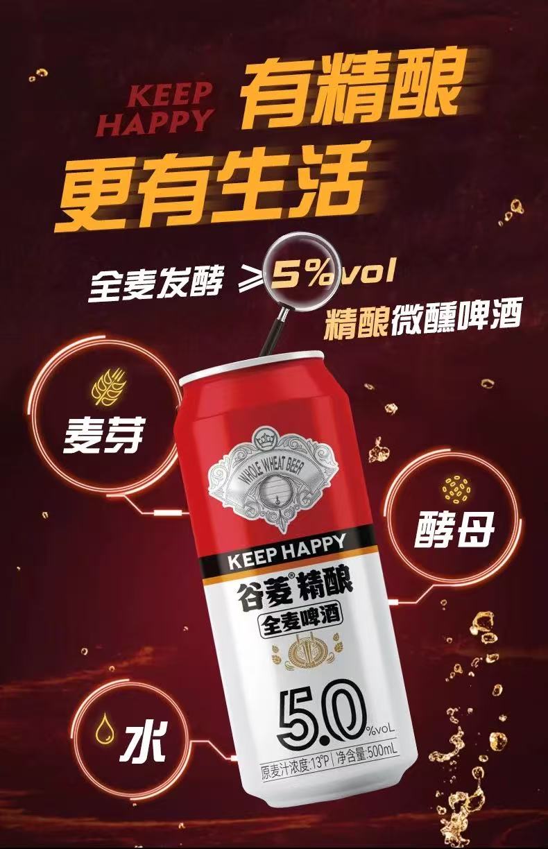 谷菱精酿全麦啤酒 酒精度:5°麦芽度:13°