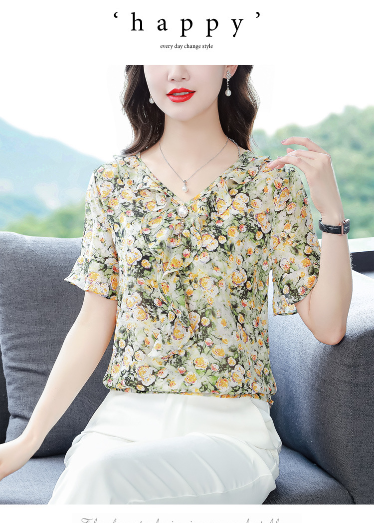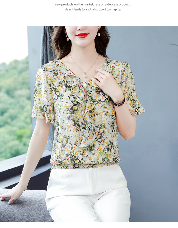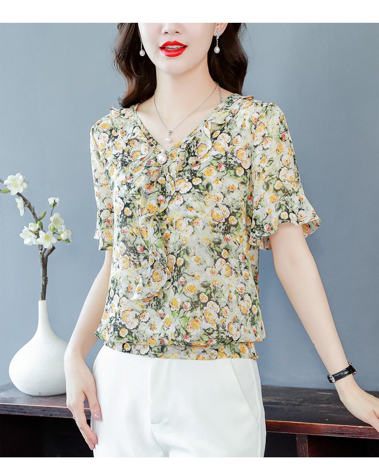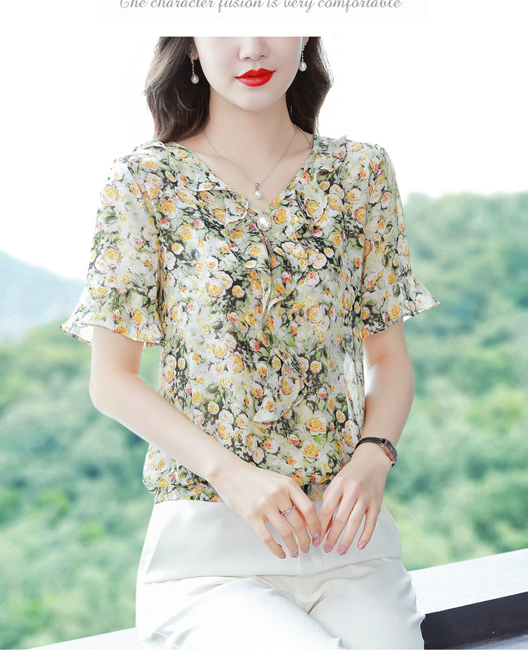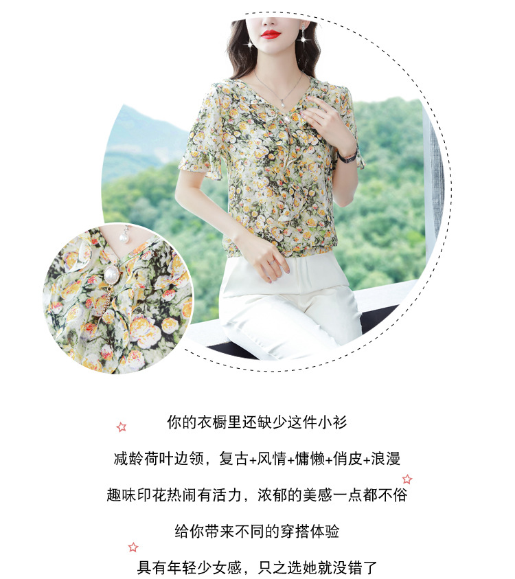 2022年夏季新款超仙上衣减龄碎花雪纺衬衫 YX9982