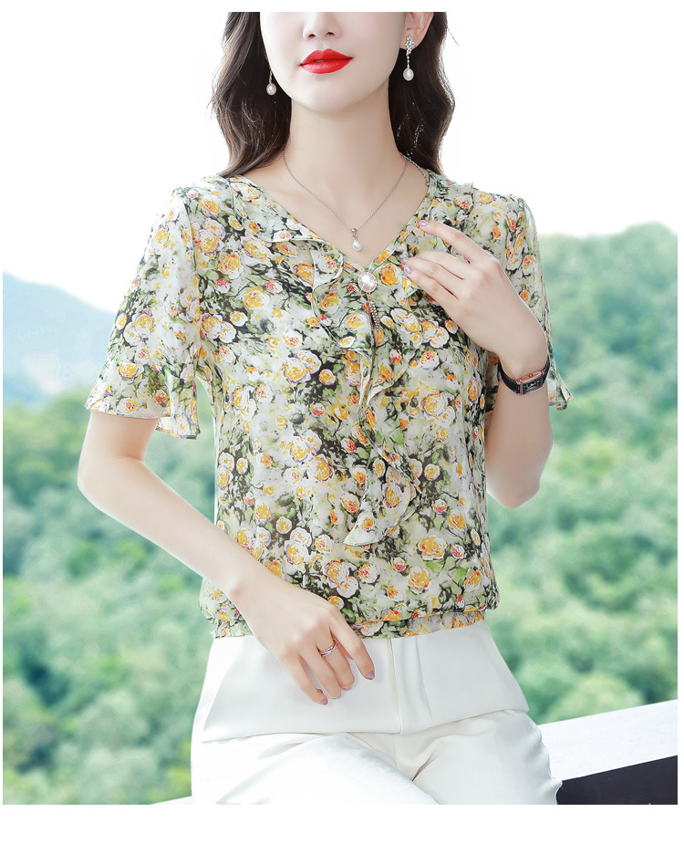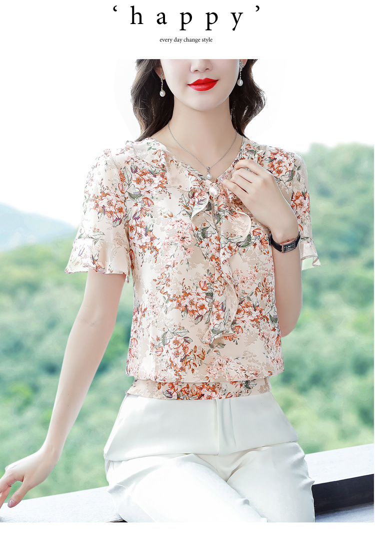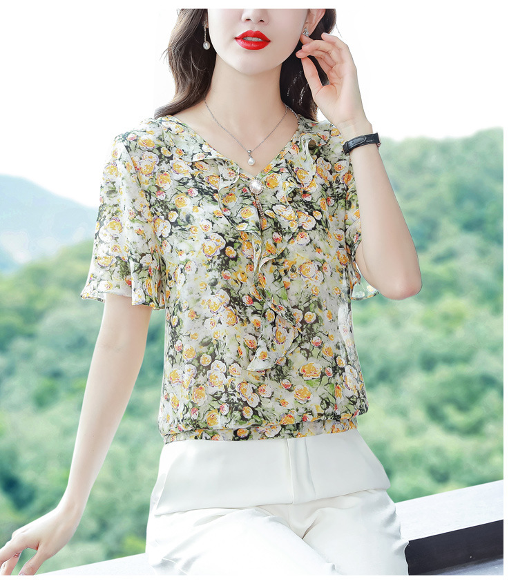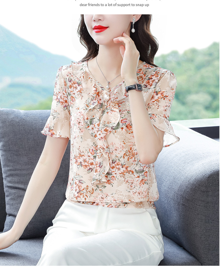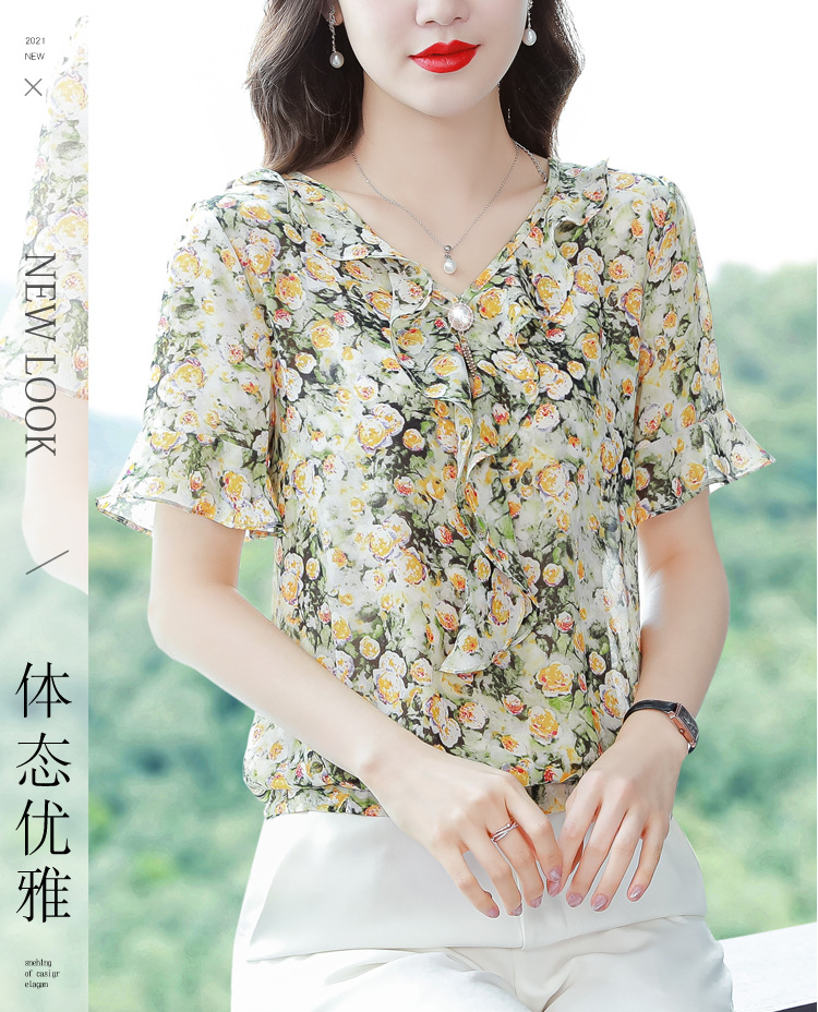 2022年夏季新款超仙上衣减龄碎花雪纺衬衫 YX9982