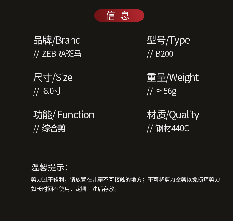 大雄ZEBRA斑马剪刀B200美发剪刀理发师专用综合剪刀6寸发廊专用