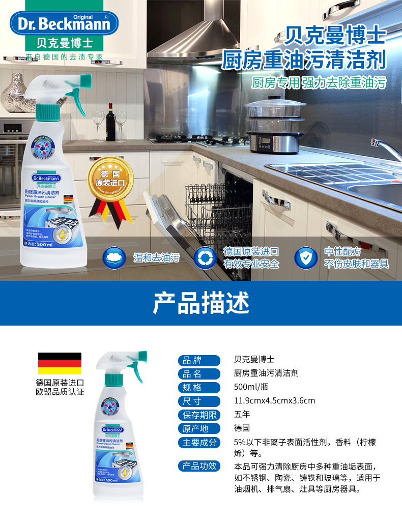 贝克曼清洁养护剂组合(不锈钢、浴瓷污垢、厨房重油污)