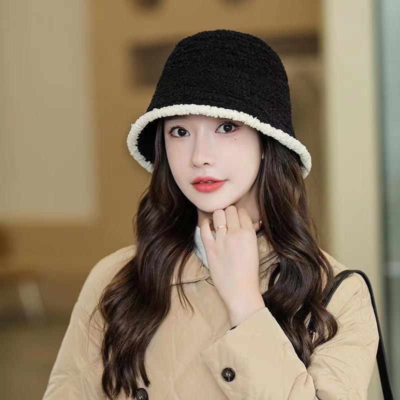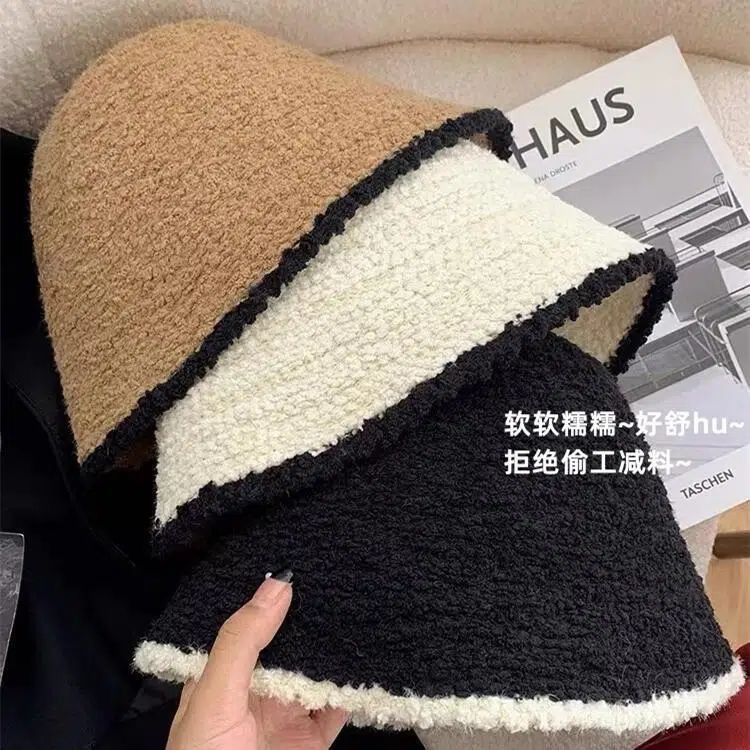 【花边设计!氛围感拉满】软软糯糯,敲舒服,毛绒渔夫帽女秋冬新款显脸小针织盆帽小香风冬季保暖水桶帽子。rb