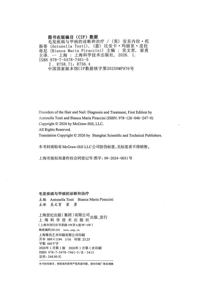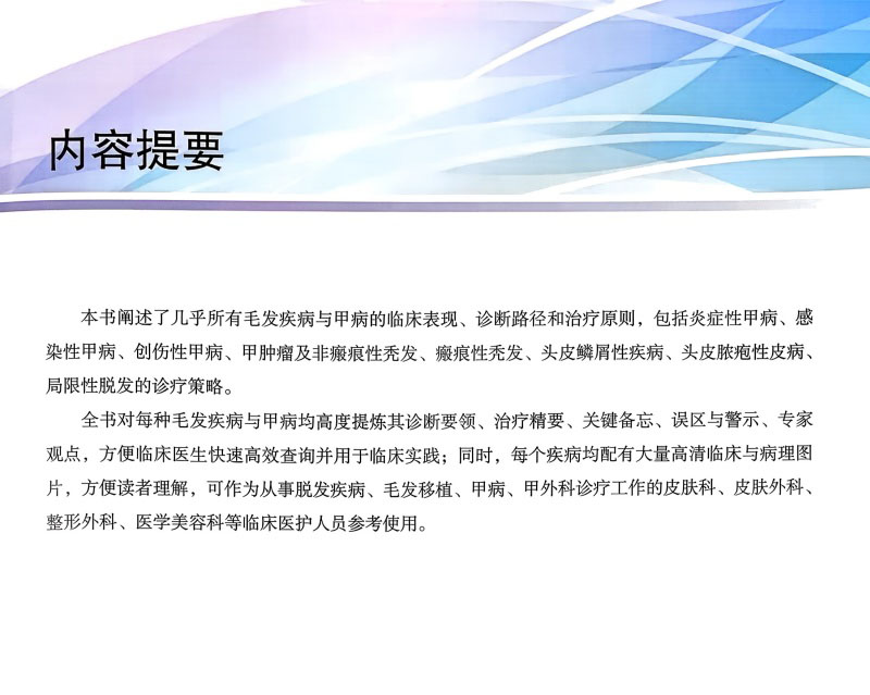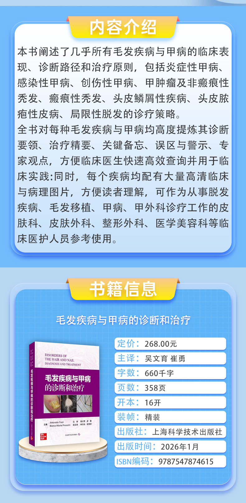毛发疾病与甲病的诊断和治疗 吴文育 崔勇 主译 可作为从事脱发疾病 甲病 医学美容科等临床医护人员参考使用 上海科学技术出版社