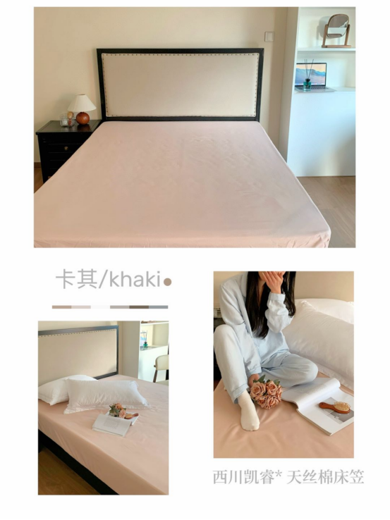 卡其实拍 床笠是极简的第一步 减少整理床的频次 在丝滑与家务当中选择 丝滑紧密的贴肤感 让丝滑稳稳留在床上 #水洗棉天丝床笠