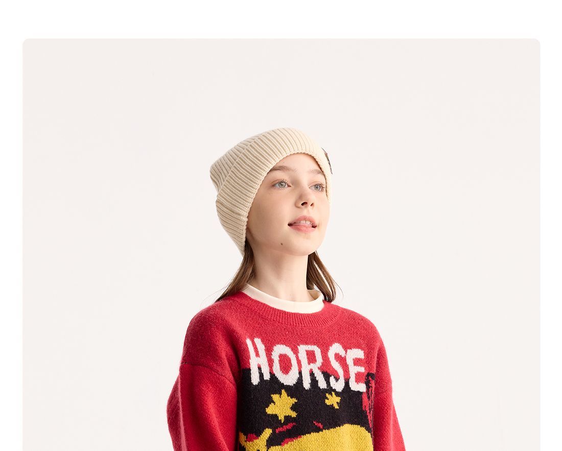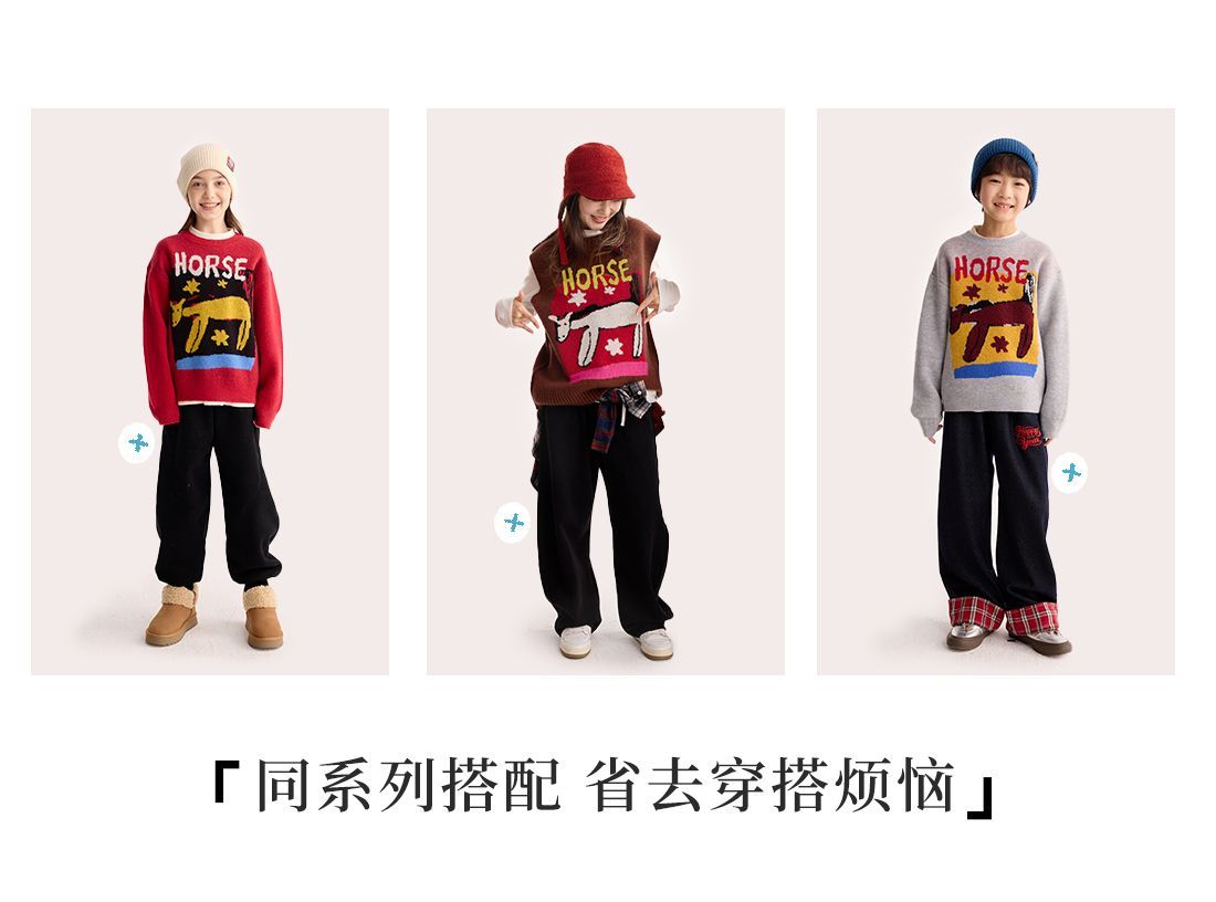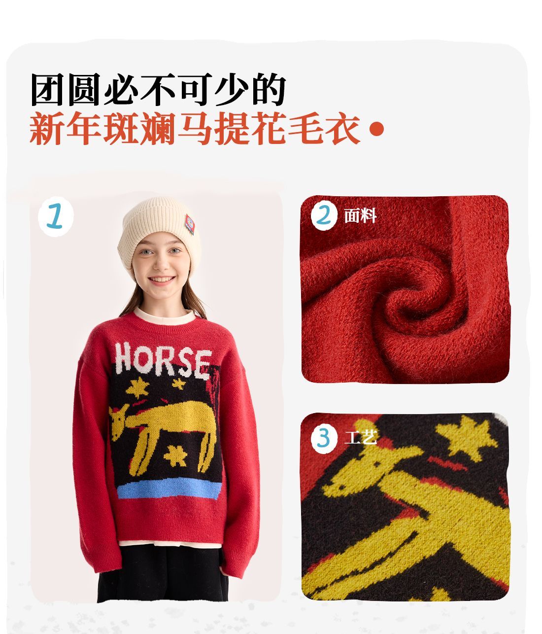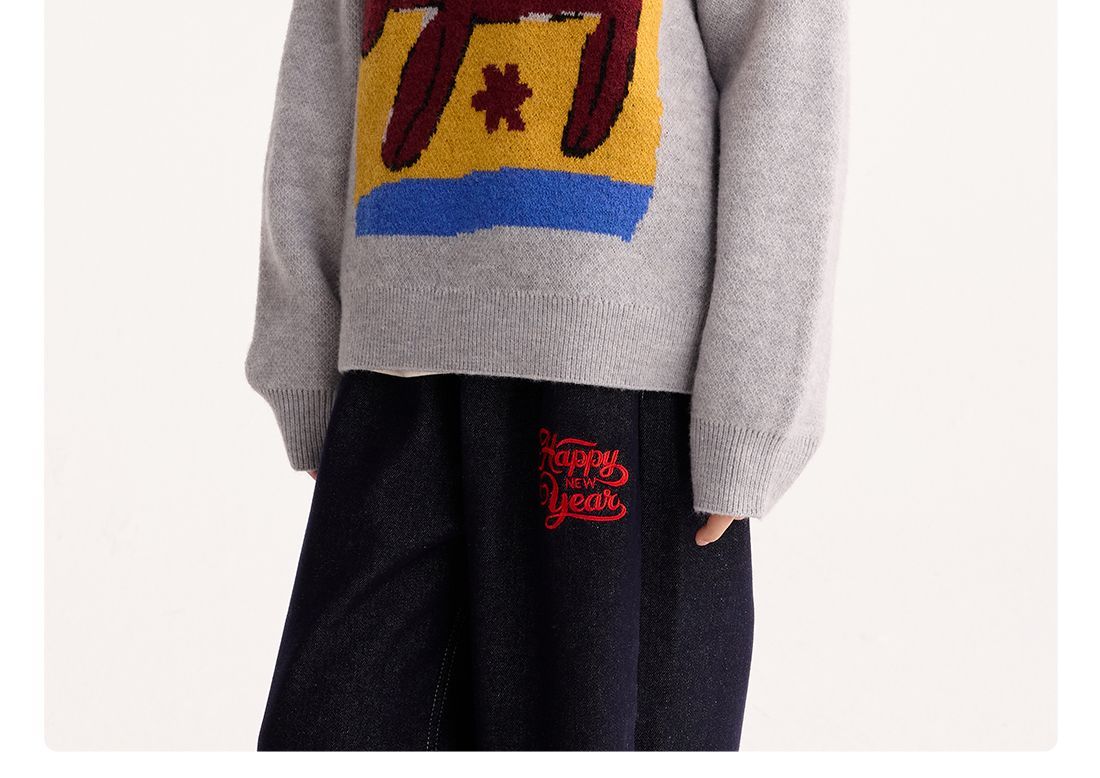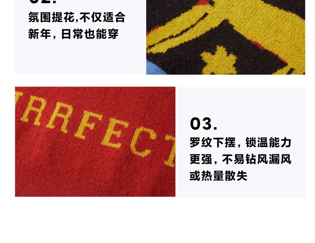 fx-【超级马力】咕噜日记儿童趣味复古提花毛衣马年亲子装新年红色款PDMY2530