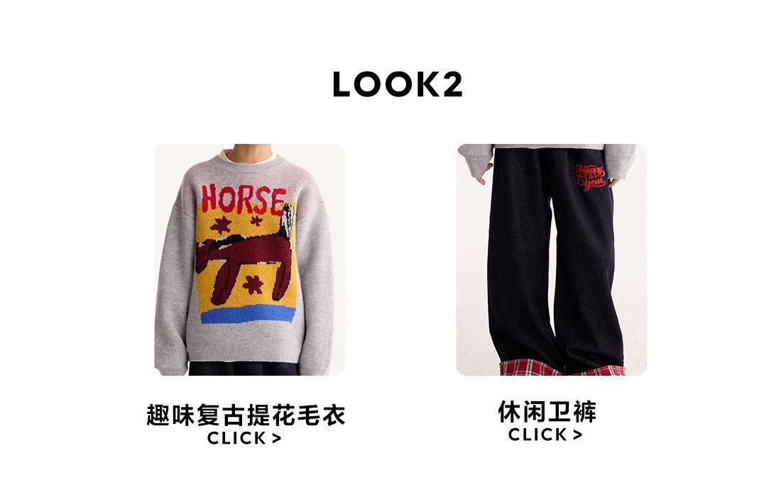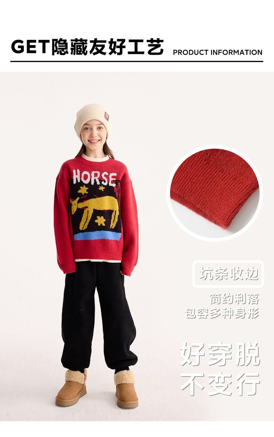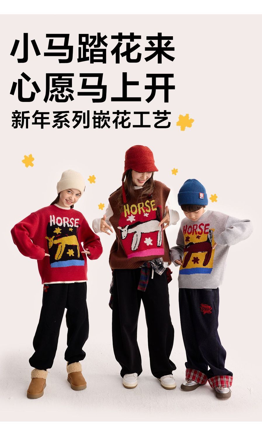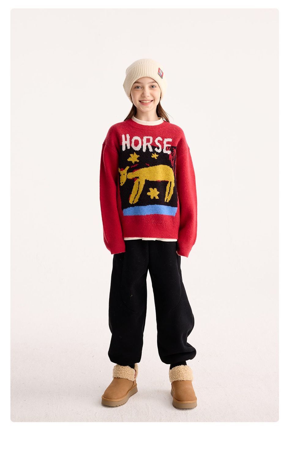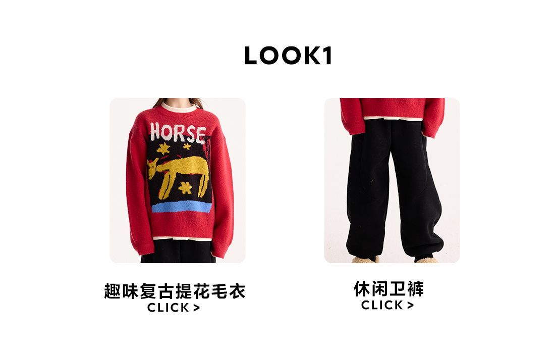 fx-【超级马力】咕噜日记儿童趣味复古提花毛衣马年亲子装新年红色款PDMY2530