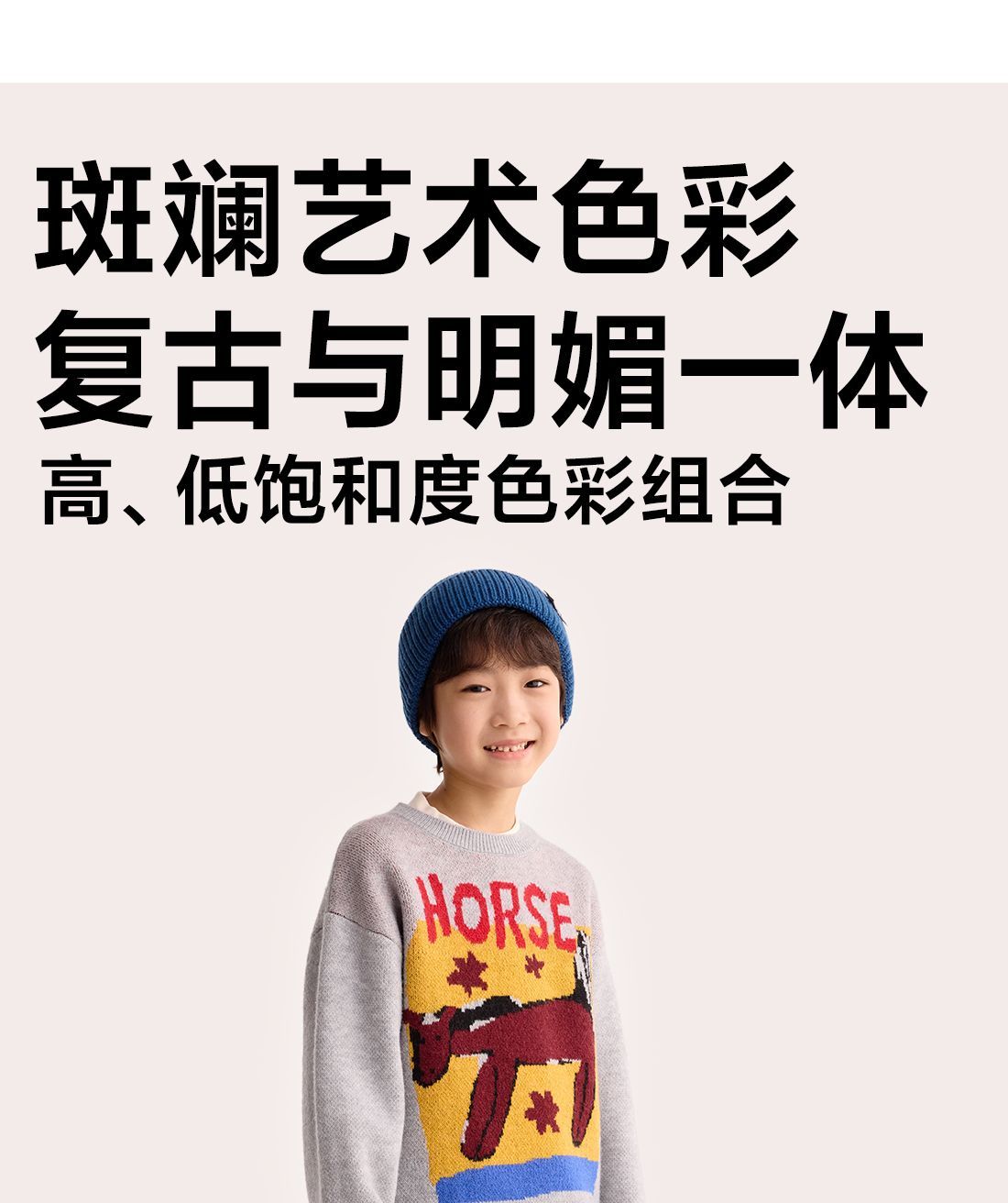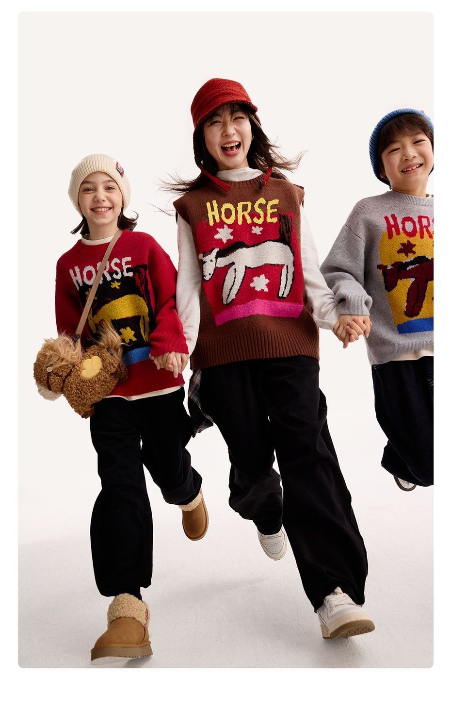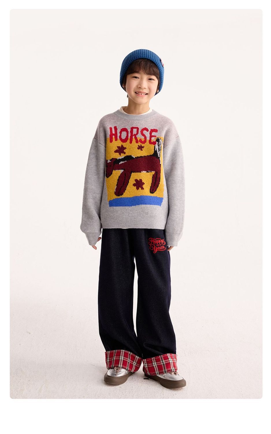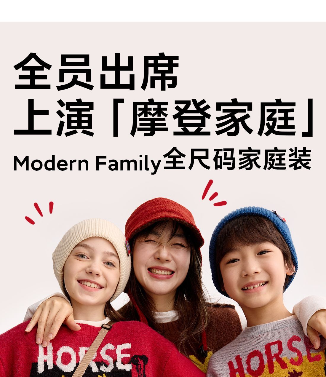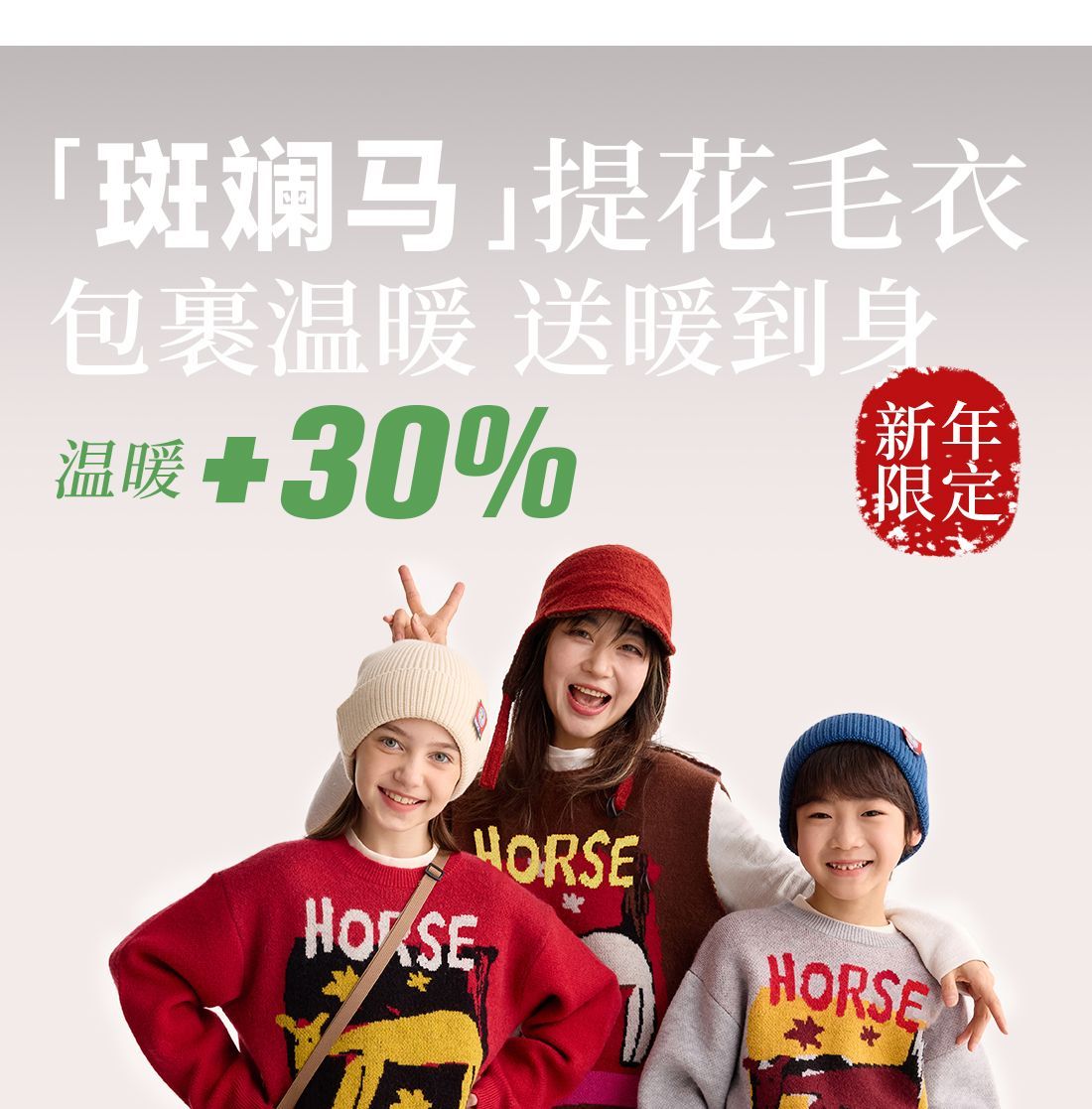 fx-【超级马力】咕噜日记儿童趣味复古提花毛衣马年亲子装新年红色款PDMY2530