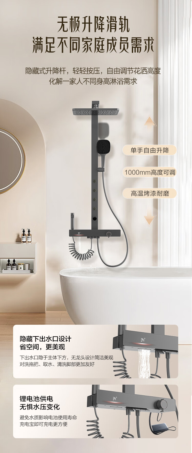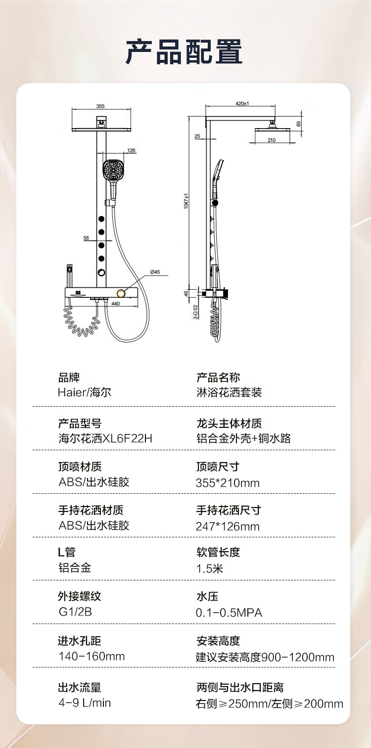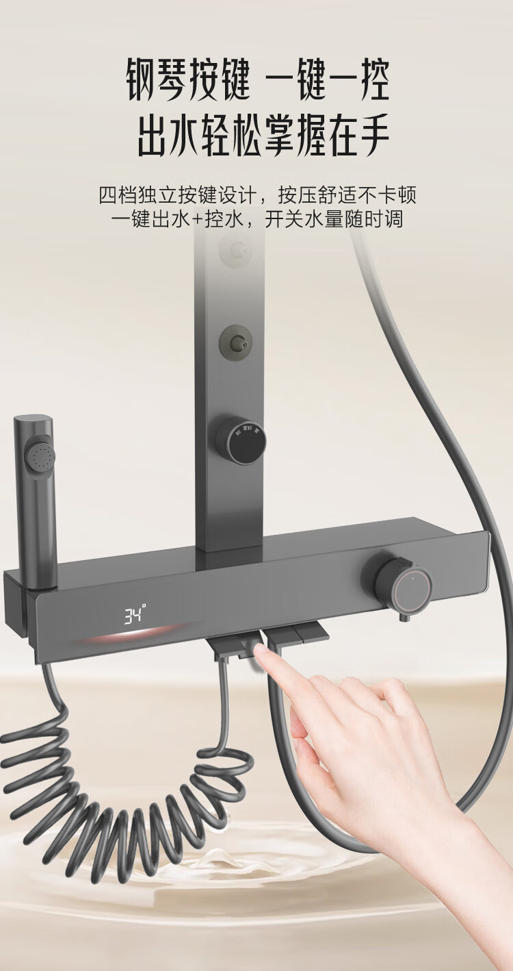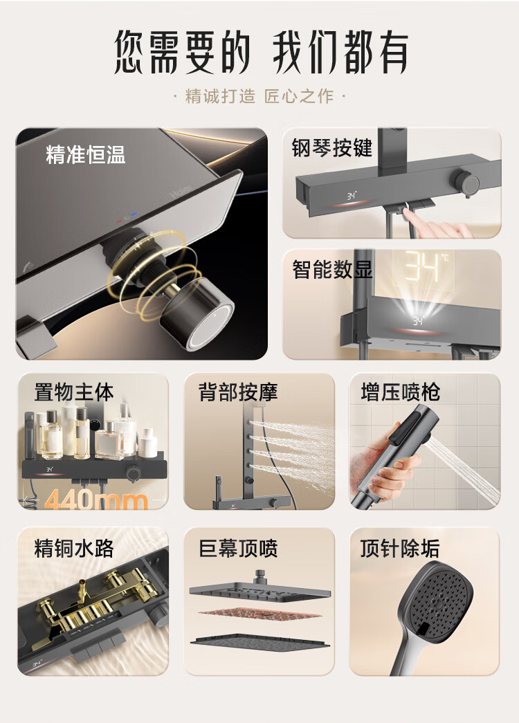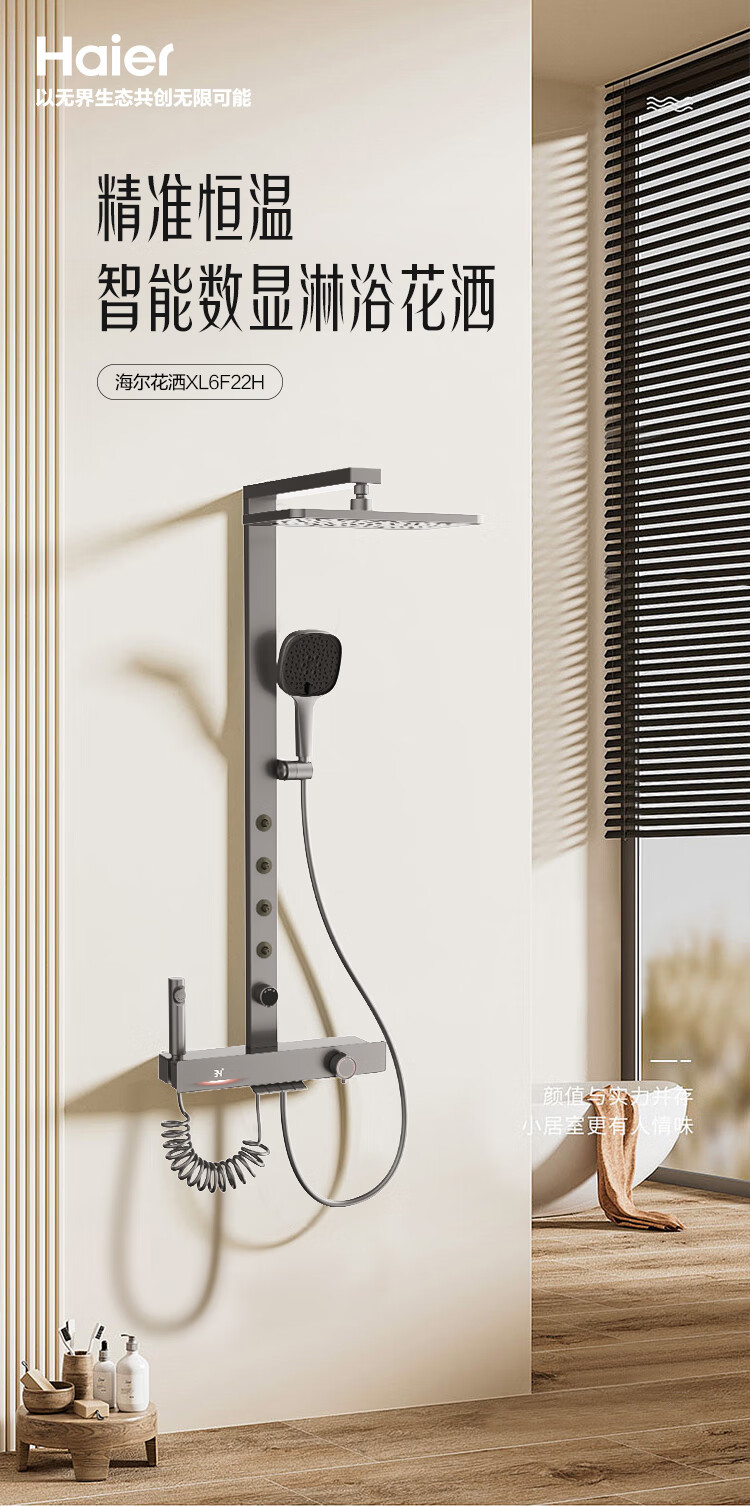 海尔(Haier)智能花洒套装 数显恒温 四功能钢琴键 3D环绕背喷 顶针除垢淋浴器 【恒温数显环绕背喷】XL6F22H 【海尔售后 免费安装】
