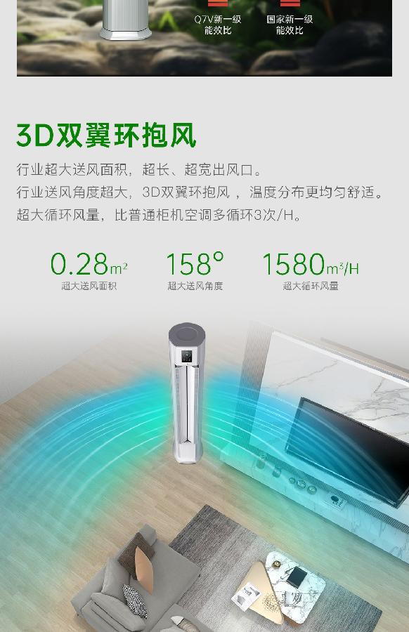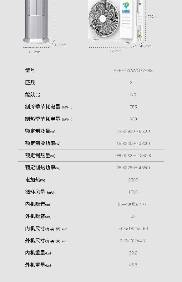 广电优选 长虹KFR-72LW/Q7V+RS大3P变频一级能效柜式空调