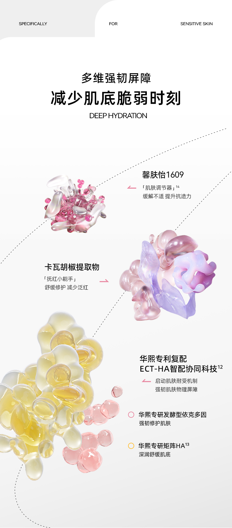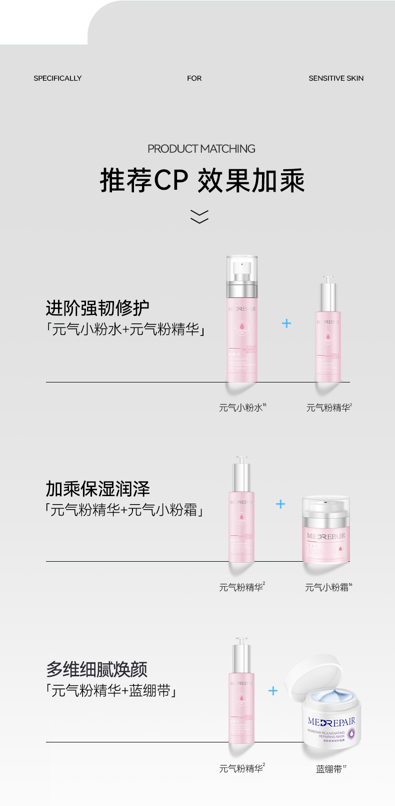 - 华熙生物集团旗下——米蓓尔MEDREPAIR,源自华熙生物多年潜心研发,“精于修复,专注美丽”为消费者解开敏肌密码,4D-HA四重活水创专利配方取代市场主成分,提供解决敏肌问题的方案。