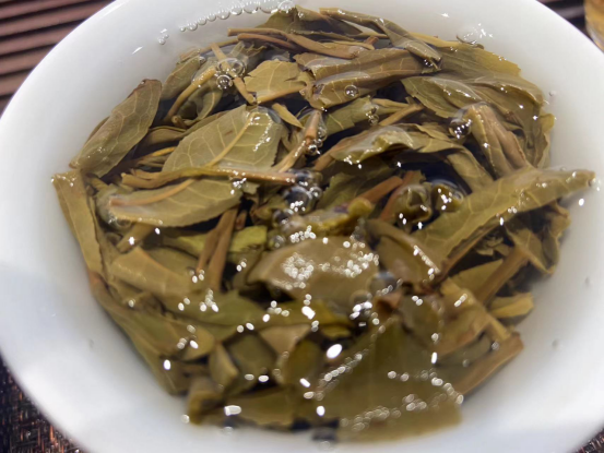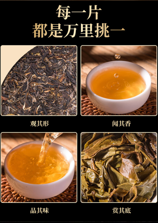 一打开茶饼,茶味弥漫,香气四溢 条索粗壮饱满,色泽油亮,白毫显著。 老班章茶以质重、气强著称! 新茶口感猛烈,回甘也很迅速。 舌底生津明显。