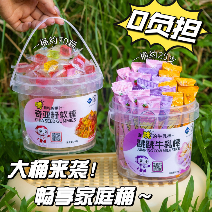 童年糖果健康版🌿2桶6味🌈【正优味园&臻邦跳跳牛乳棒、奇亚籽软糖】0负担奶糖+水果糖🛒超大桶!超实惠!超健康!