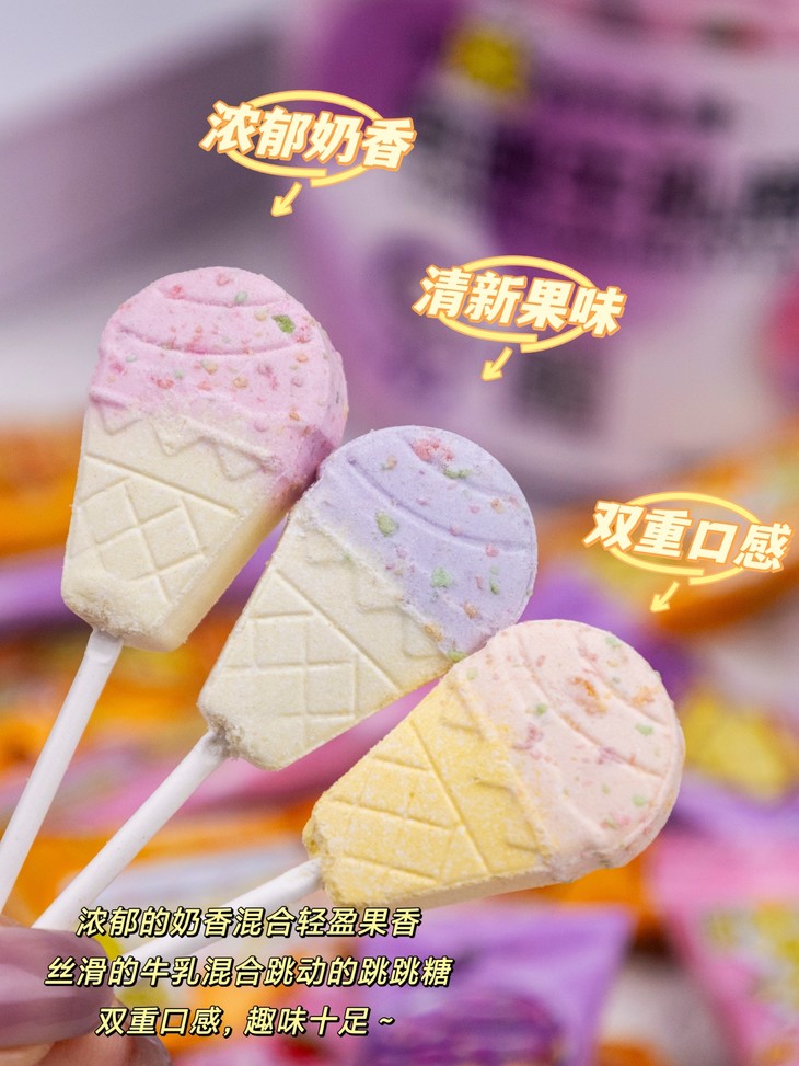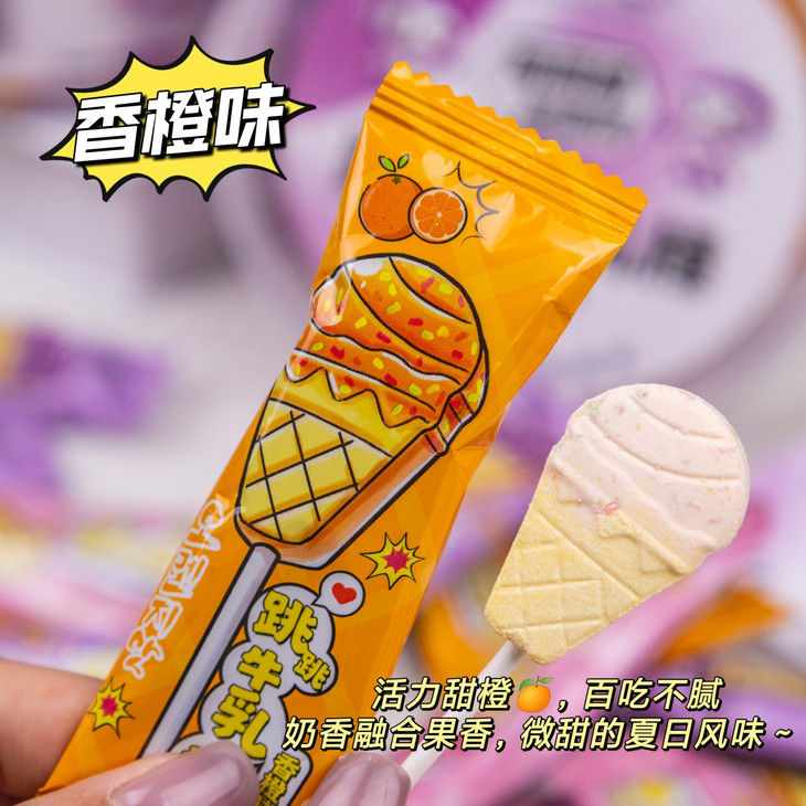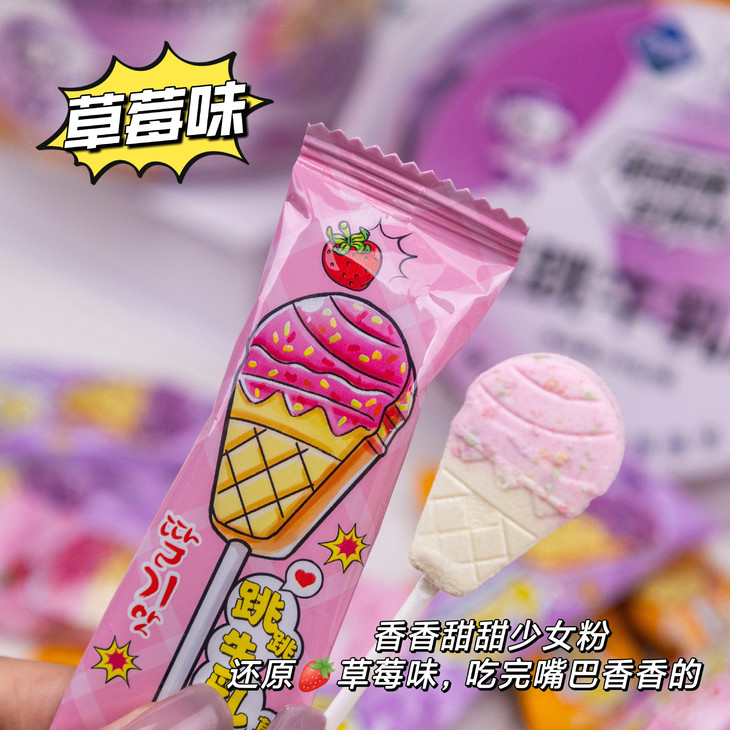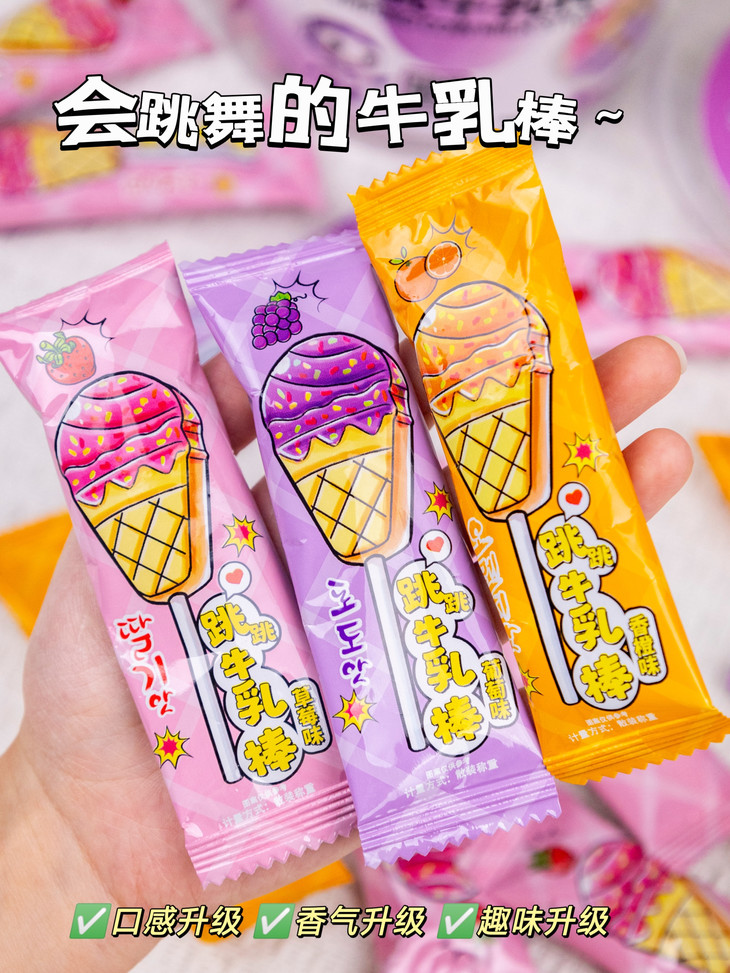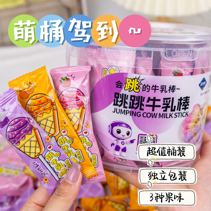 【跳跳牛乳棒】 ✅0植脂末,0甜蜜素,0果味香精 ✅原果汁≥30%,为丝滑奶味注入浓郁果香 ✅跳跳糖+牛乳糖,童年回忆王炸组合 🌈浓郁牛乳味,入口即化的细腻丝滑 🌈清新水果味,香甜回味百吃不腻 🌈爆炸跳跳糖,噼里啪啦的童年回忆 ❄️萌趣雪糕造型,高颜值实力派跳跳奶棒糖 🌟天然缤纷果味,浓郁奶香,美味加倍!