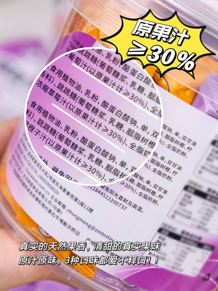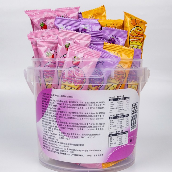 🍇葡萄味+🍓草莓味+🍊香橙味 🌿清新水果香,吃完嘴巴都是香香的 🌿浓郁水果味,清甜可口百吃不腻 🐮融合奶呼呼的牛乳粉 🌟丝滑的牛乳奶香味浓郁,包裹每个味蕾 🉑果味清香怡人,中和奶味相得益彰
