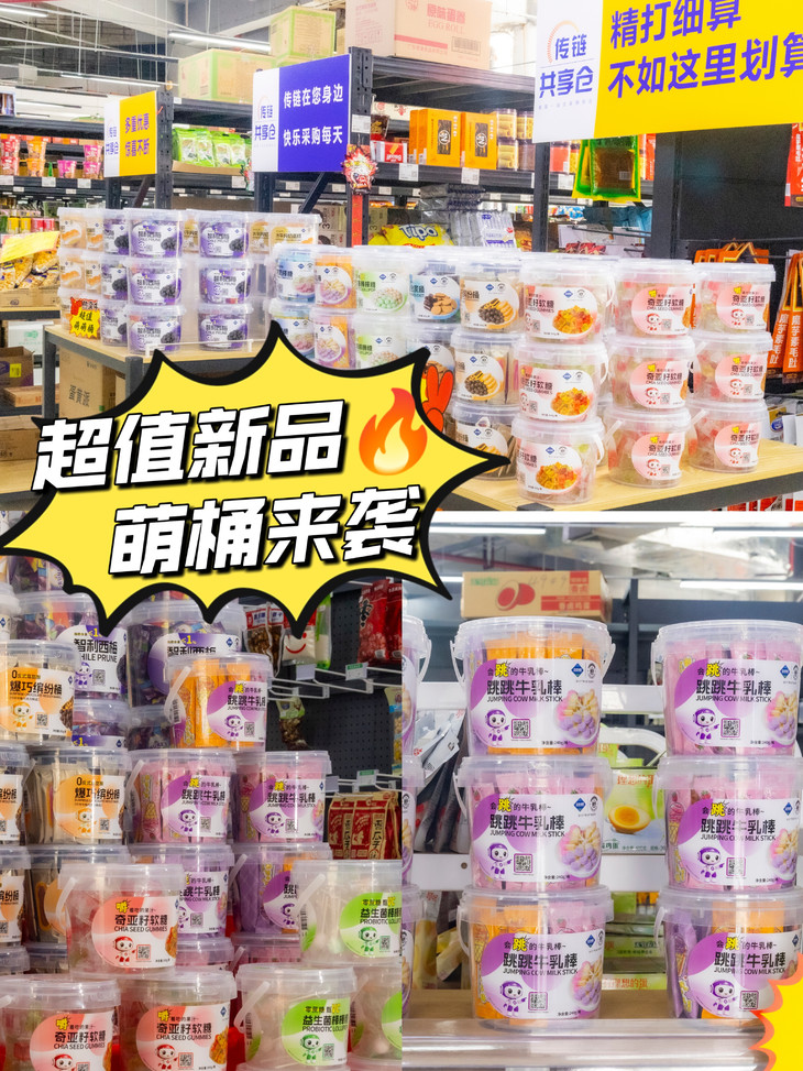 正优味园联名的超值萌萌桶系列 致力于【0负担食品研发】 各项资质证书齐全、品质可靠 新品现在已经入驻各大商超、便利店 只要一杯奶茶钱!!全款拿下一大桶 网红美食+网红收纳桶+惊爆低价 超商\零食店\便利店的引流密码都在这里了