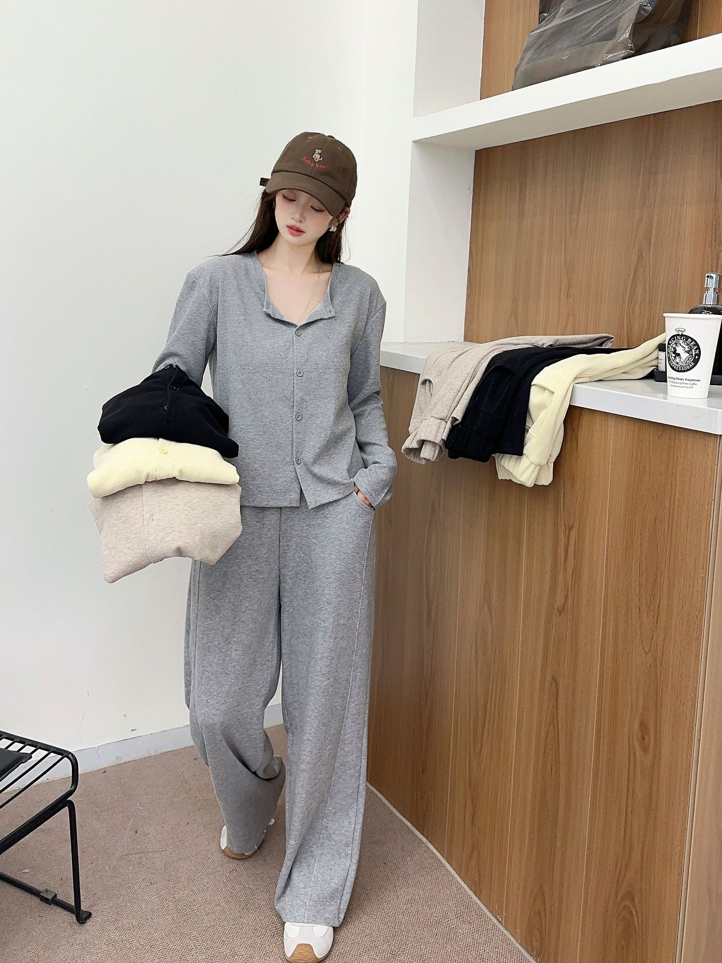 懒人力荐!叠搭单穿一把手糯米羊绒休闲显瘦外穿套装