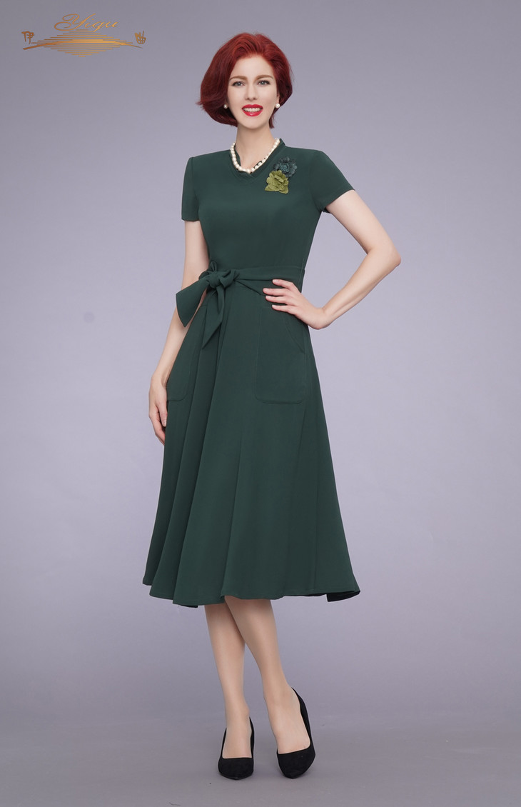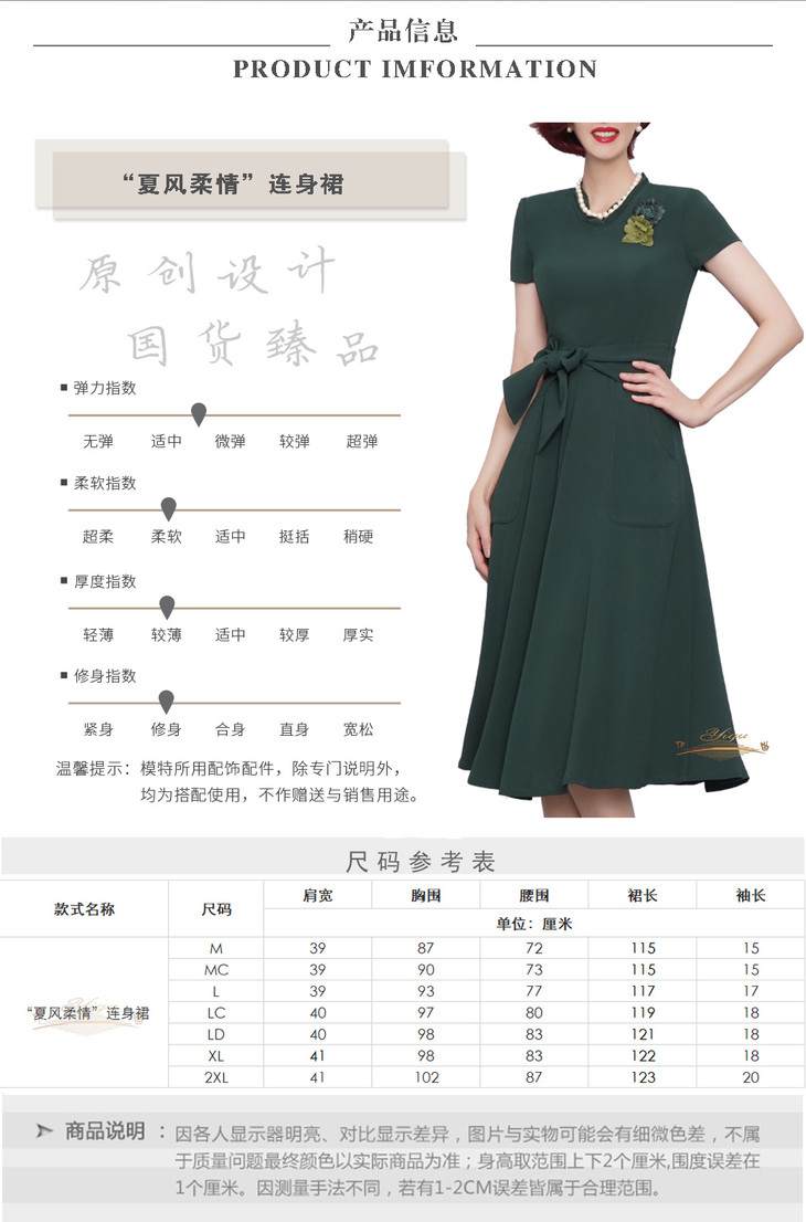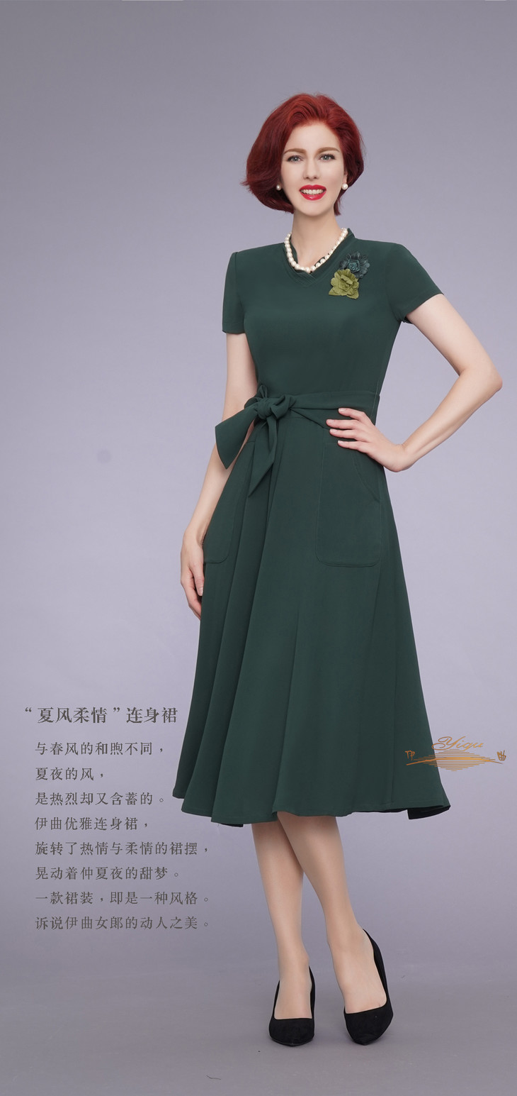 【断码】M/L/码•YIQU|“夏风柔情”连身裙(墨绿)PT