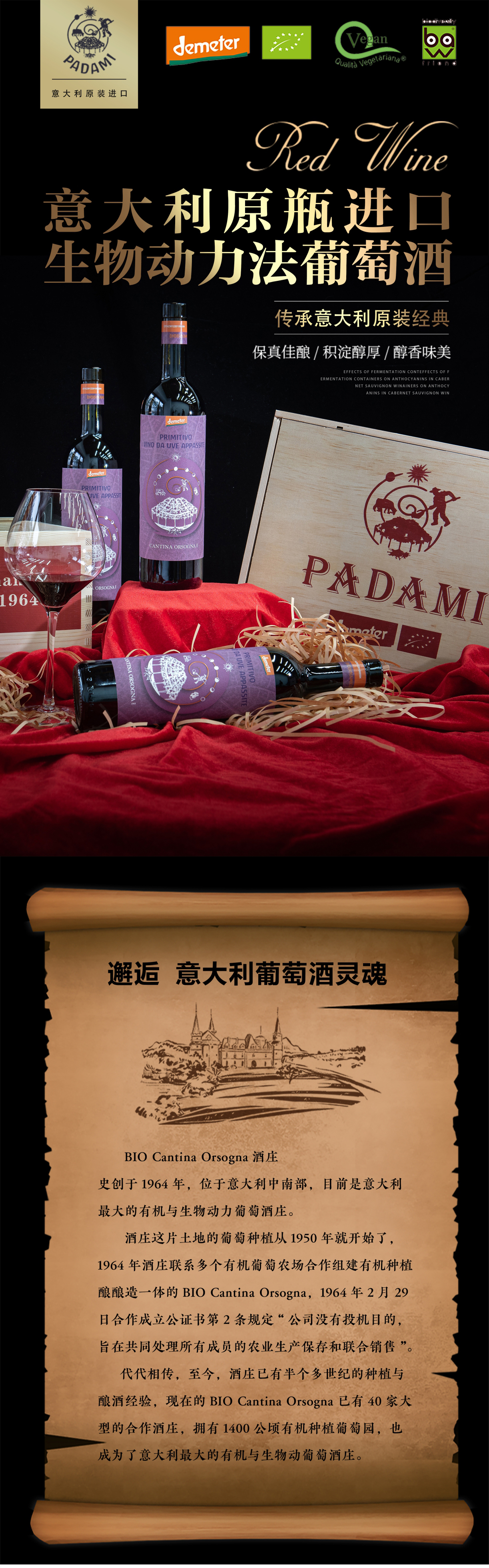 意大利原瓶进口帕达米紫云德米特葡萄酒