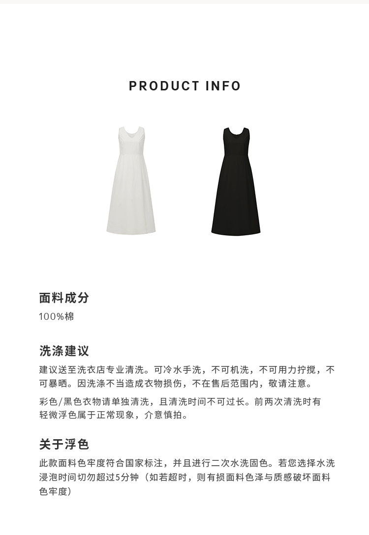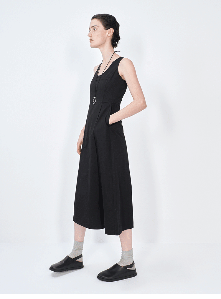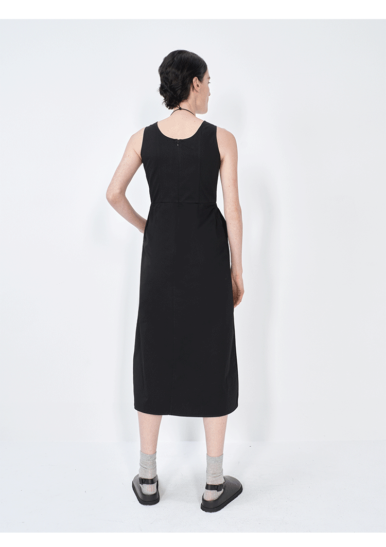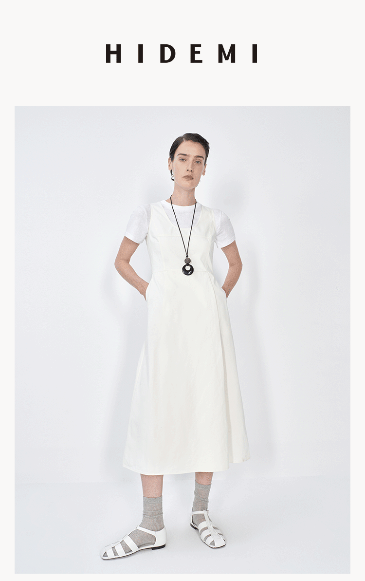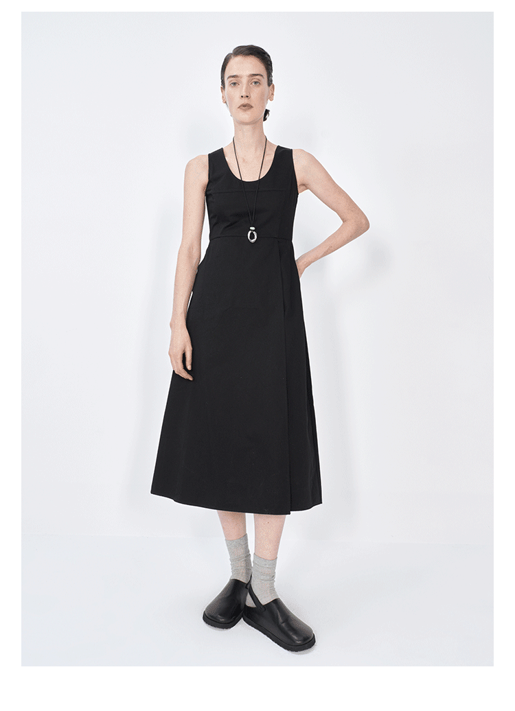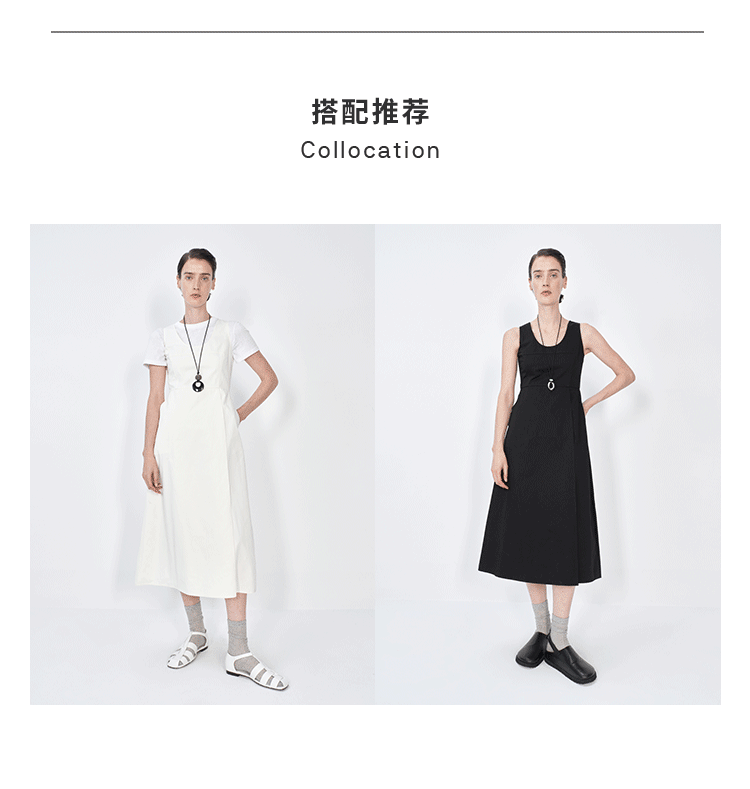 HIDEMI极简收腰显瘦设计感圆领背心连衣裙 黑色/米白色