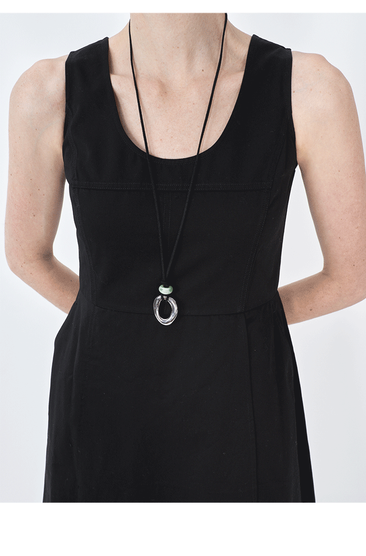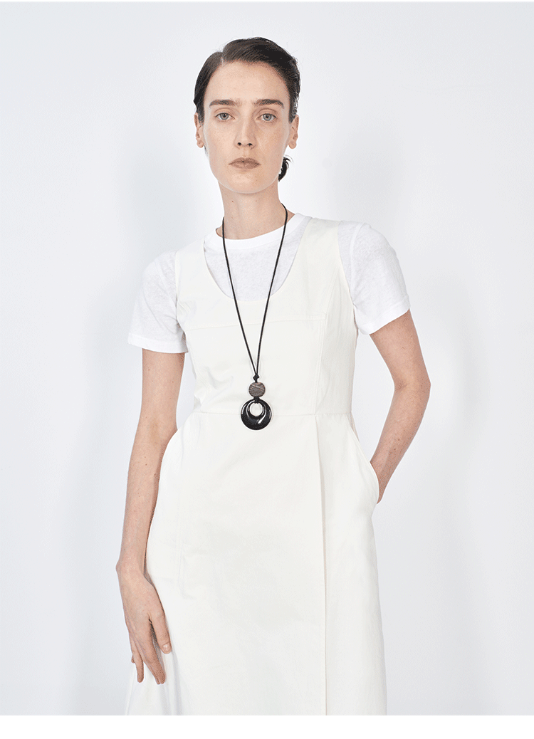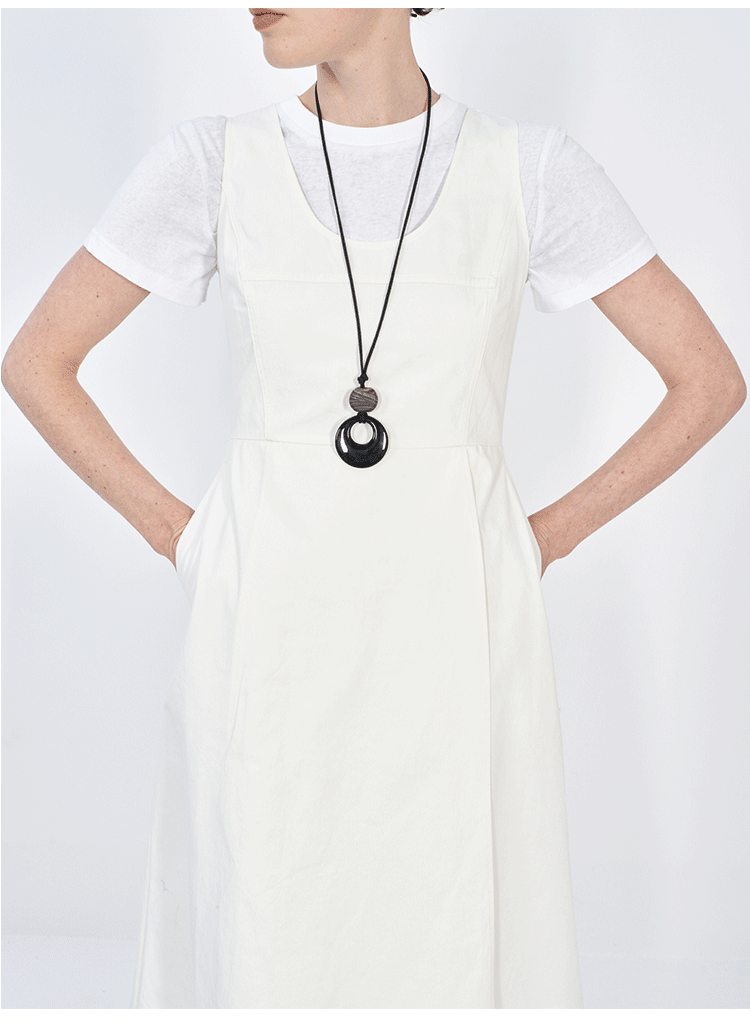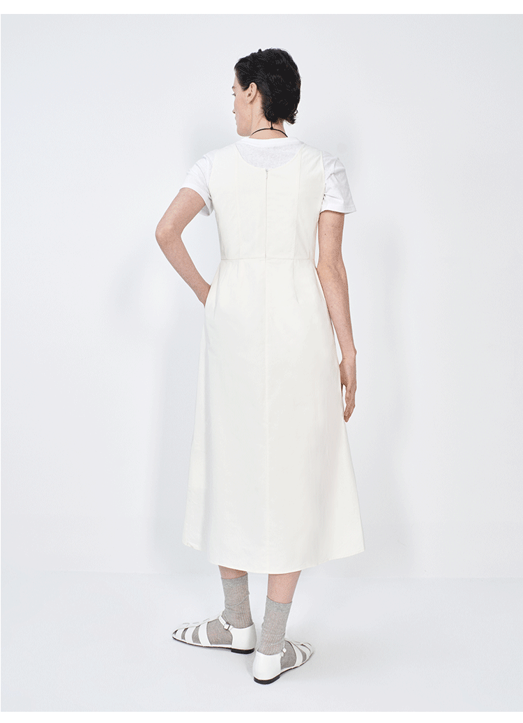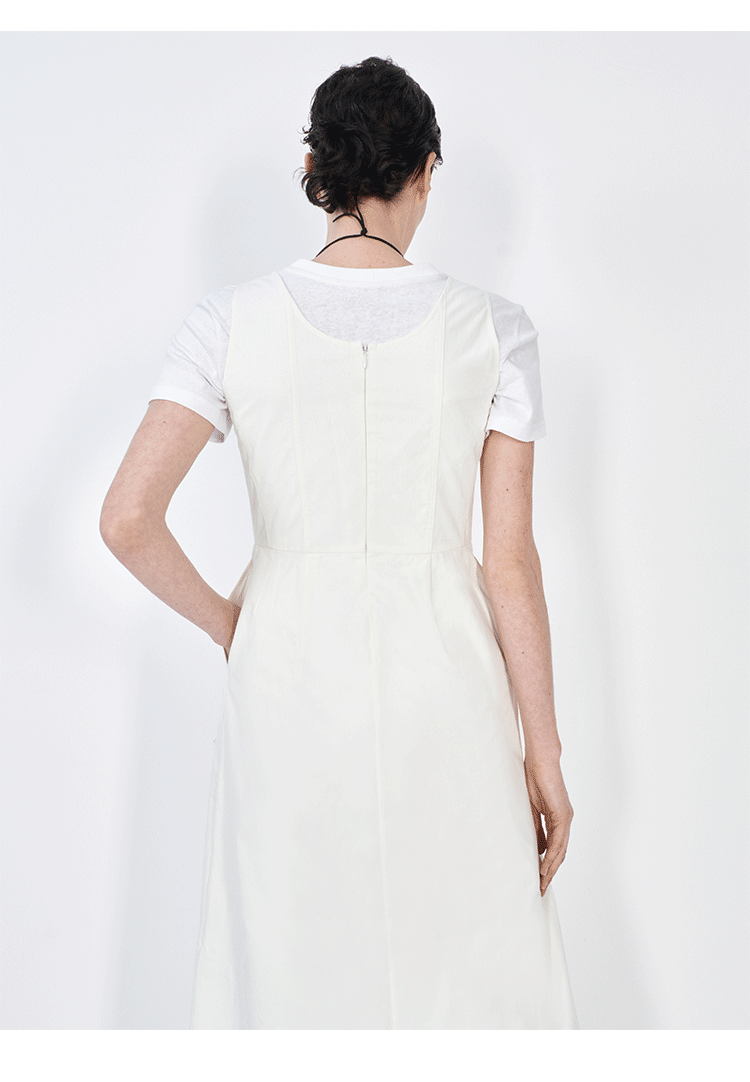 HIDEMI极简收腰显瘦设计感圆领背心连衣裙 黑色/米白色