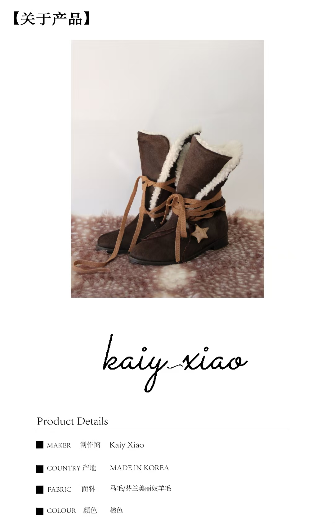Kaiy Xiao 魔法星星系列 冰原雪绒绑带靴
